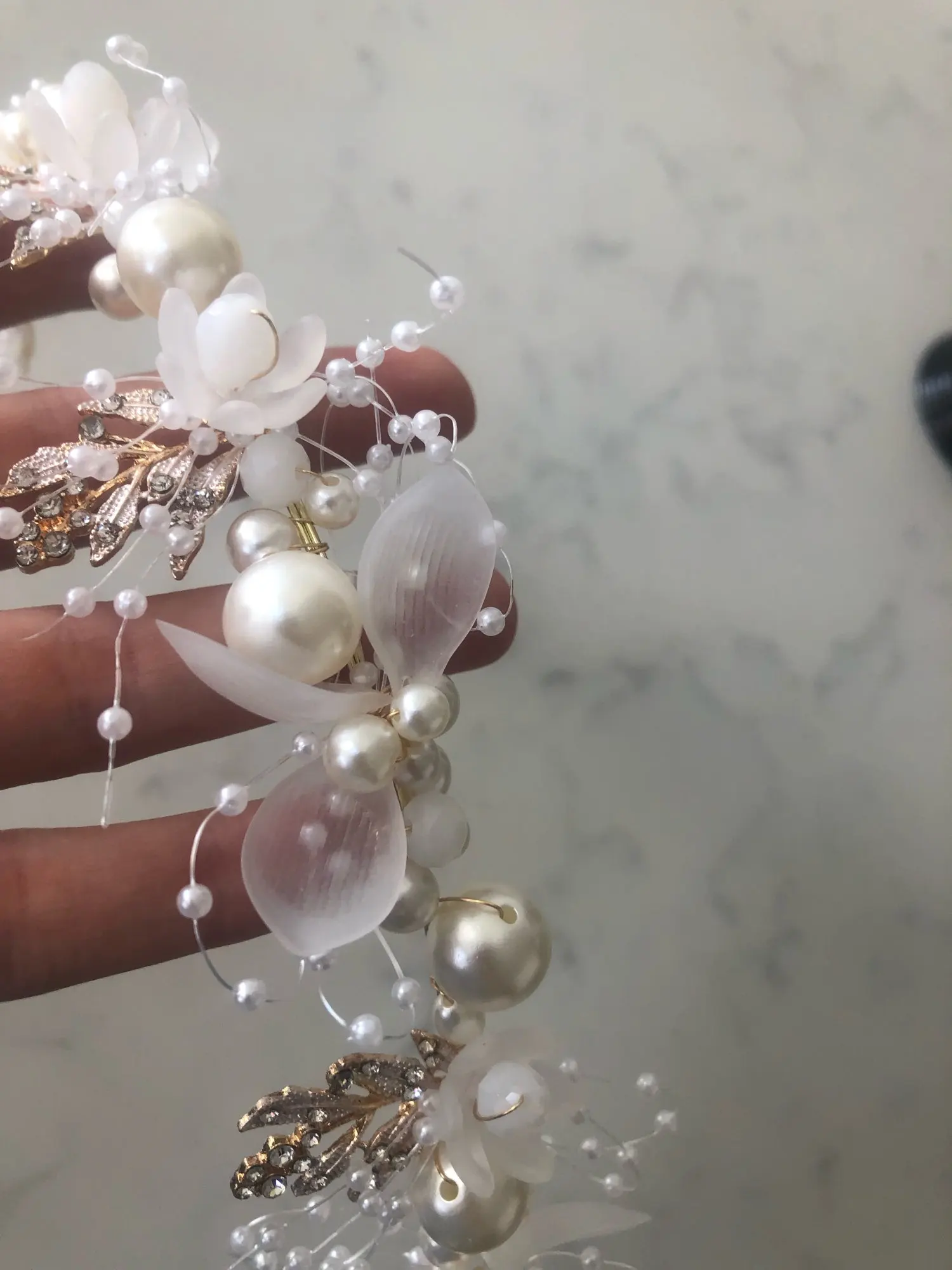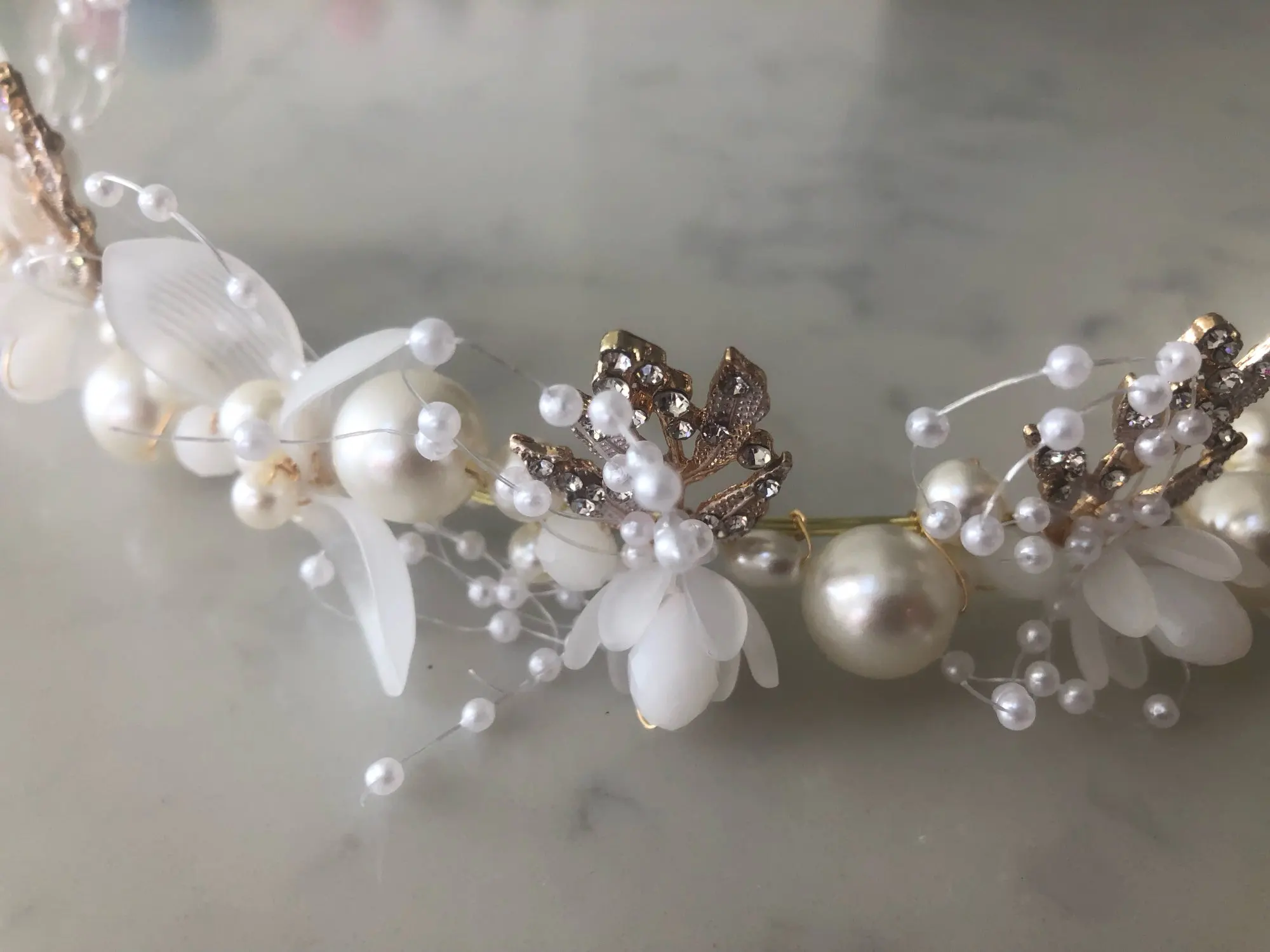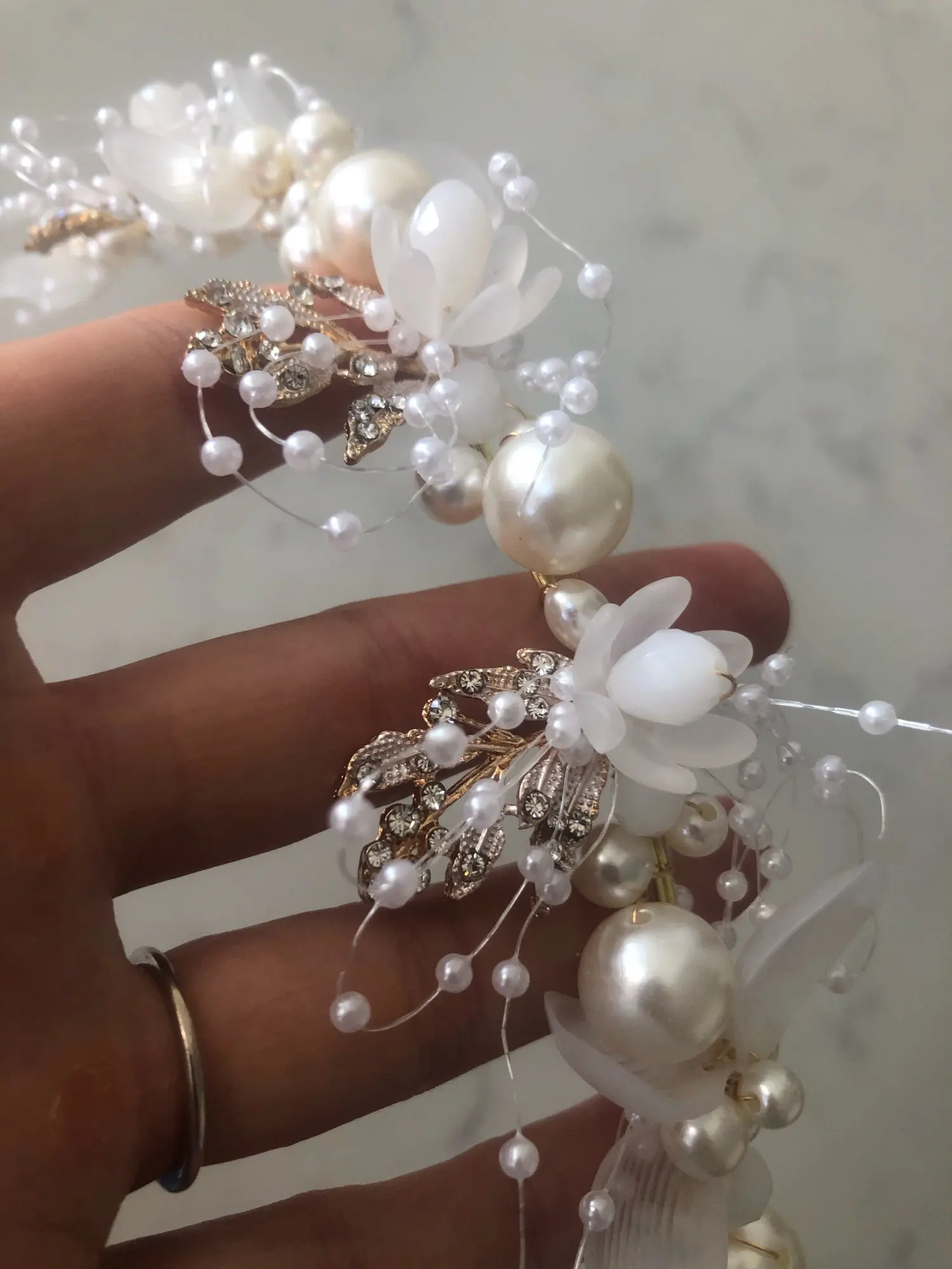 Повязка для волос с жемчужинами, элегантный свадебный ободок ручной работы с цветами, украшение для волос с кристаллами