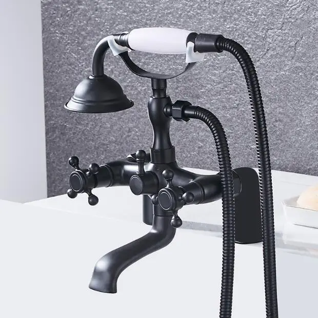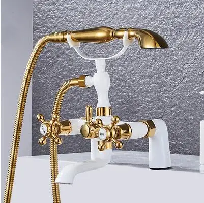Двойные ручки, Золотой смеситель для ванны в телефонном стиле, лату...
