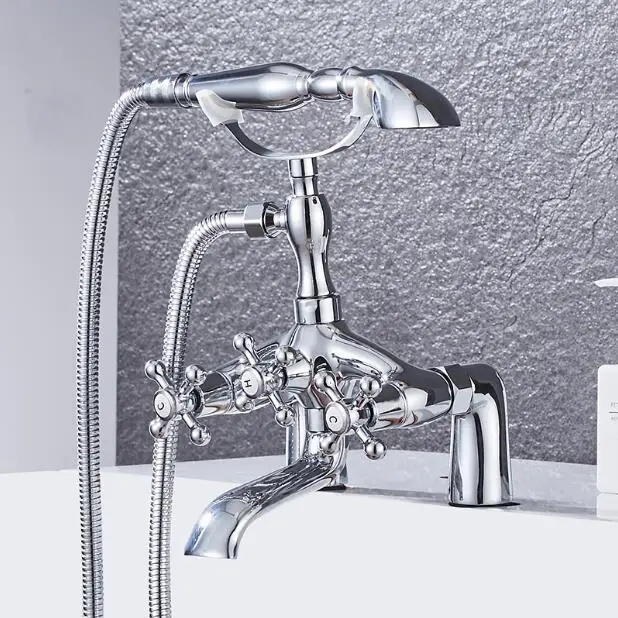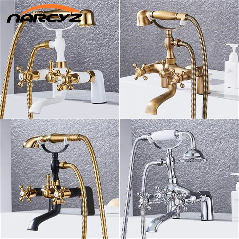 Смесители для ванны, Классический Золотой шезлонг с двойными стойками, смеситель для ванны на боковой стороне горячей и холодной стойки для душа 002-2