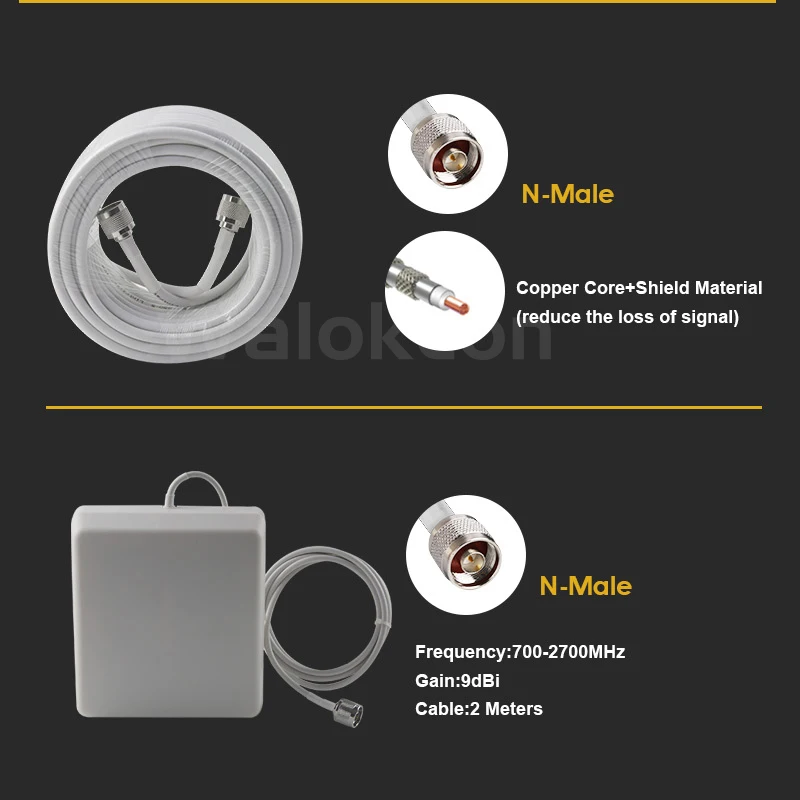 Усилитель сигнала может усилить голос и 2g 3g 4g Интернет для всех европейских стран. Пять Полос Полоса 20 (LTE 800) Частота восходящей связи: 832-862 МГц/частота нисходящей связи: 791-821 МГц Диапазон 8 (GSM900 UMTS900) Частота восходящей связи: 890-915 МГц/частота нисходящей связи: 935-960 МГц Полоса 1 (WCDMA2100) Частота восходящей связи: 1920-1980 МГц/частота нисходящей связи: 2110-2170 МГц Полоса 3 (DCS1800 LTE1800) Частота восходящей связи: 1710-1785 МГц/частота нисходящей связи: 1805-1880 МГц Полоса 7 (LTE 2600) частота восходящей связи: 2500-2570 МГц/частота нисходящей связи: 2620-2690 МГц Усиление: 65 дБ