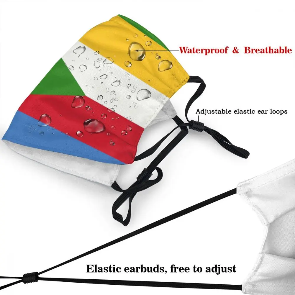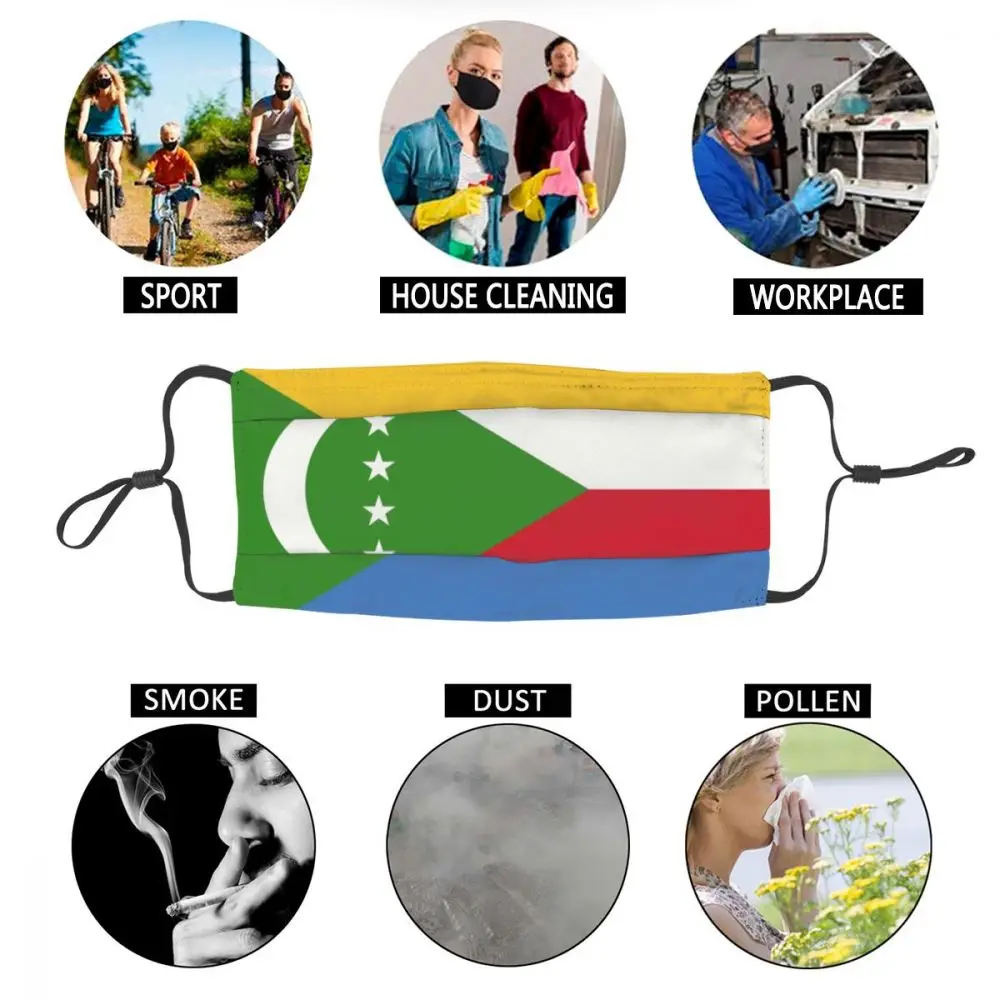 Маска для лица унисекс с флагом Коморских Островов, респиратор для защиты от смога, не одноразовая маска для рта