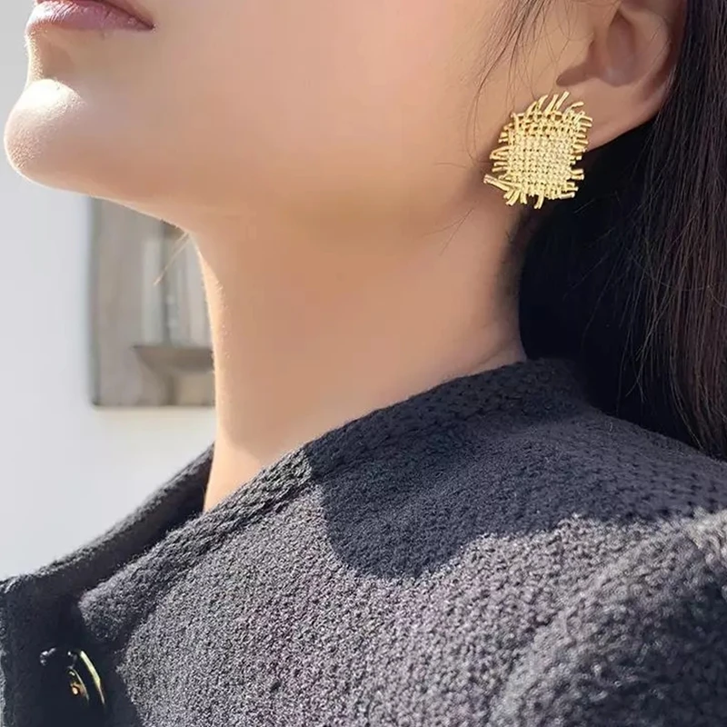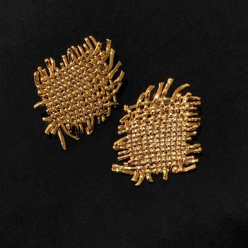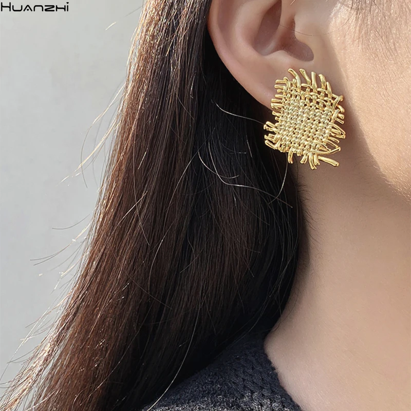 HUANZHI 2020 новые ретро золотые геометрические нестандартные тканые ромбы металлические увеличенные серьги-гвоздики для женщин и девочек ювелирные изделия