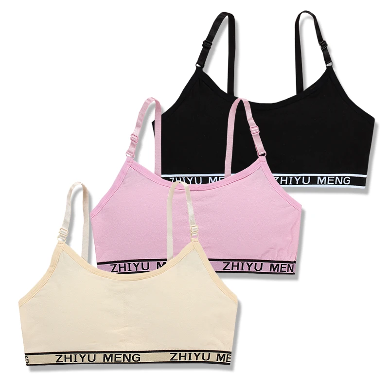3 шт.лот, бюстгальтер для девочек, нижнее белье, детский хлопковый однотонный спортивный бюстгальтер для подростков от 8 до 14 лет