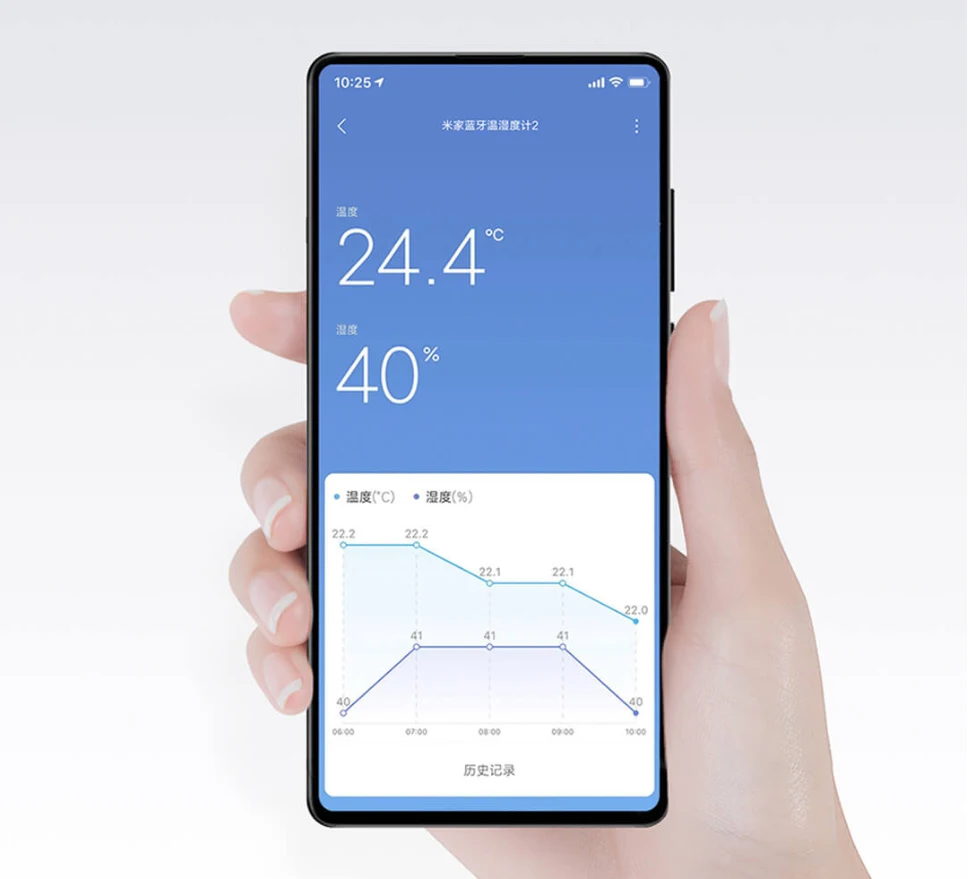 Откройте приложение Mijia и добавьте Измеритель температуры и влажности Bluetooth Mijia 2 для просмотра кривой изменения температуры и влажности в реальном времени. Данные об изменении температуры и влажности будут храниться в корпусе термометра и облаке. * Температура и влажность Mjia могут хранить данные в течение 3 месяцев, изменения температуры и влажности, а облако может хранить 6 месяцев