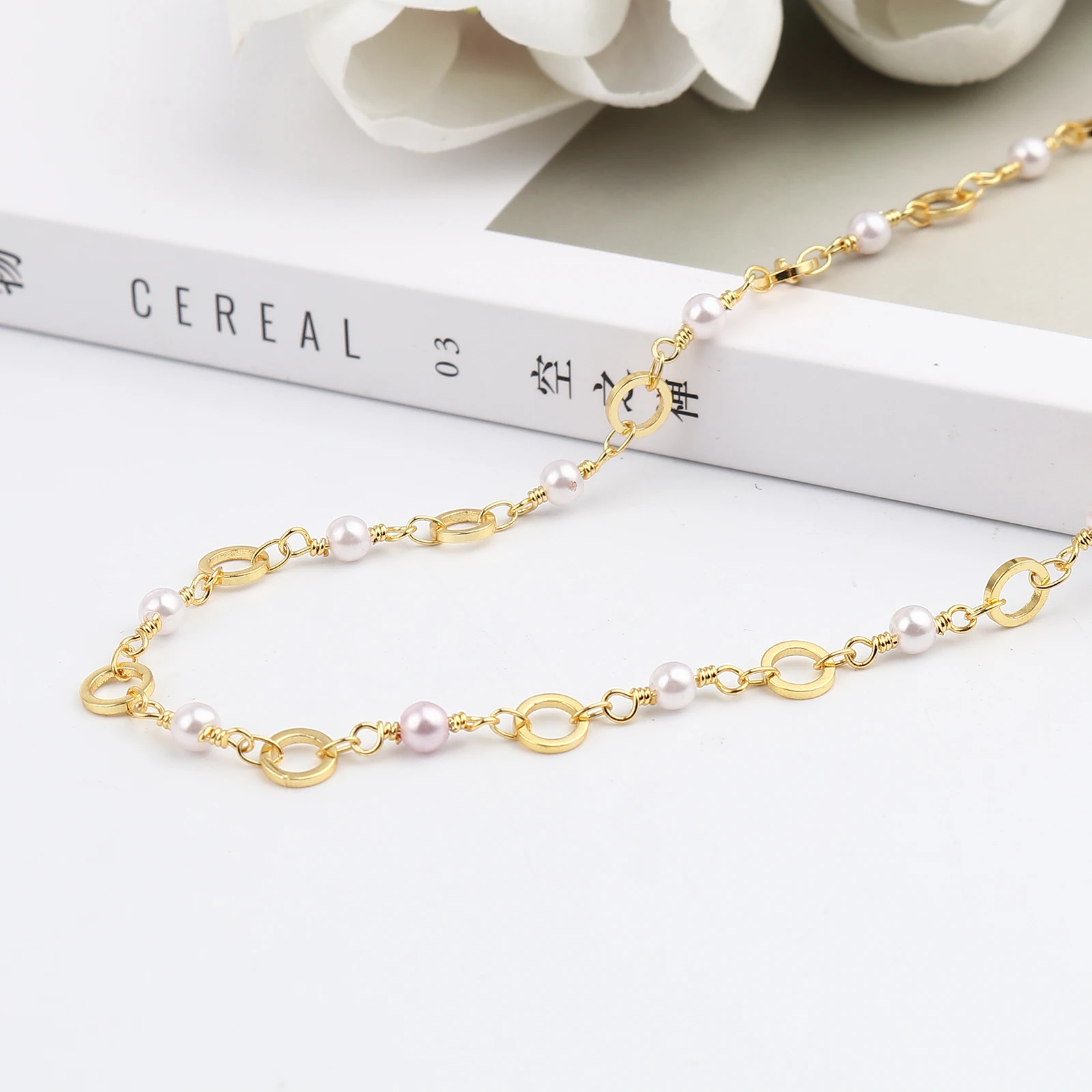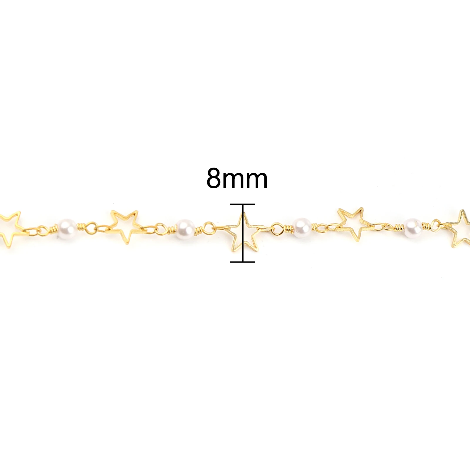Doreen коробка медные звенья цепи фурнитура позолоченная белая акриловая имитация жемчужное звено цепь фурнитура пентаграмма Звезда 68 мм, 1 м