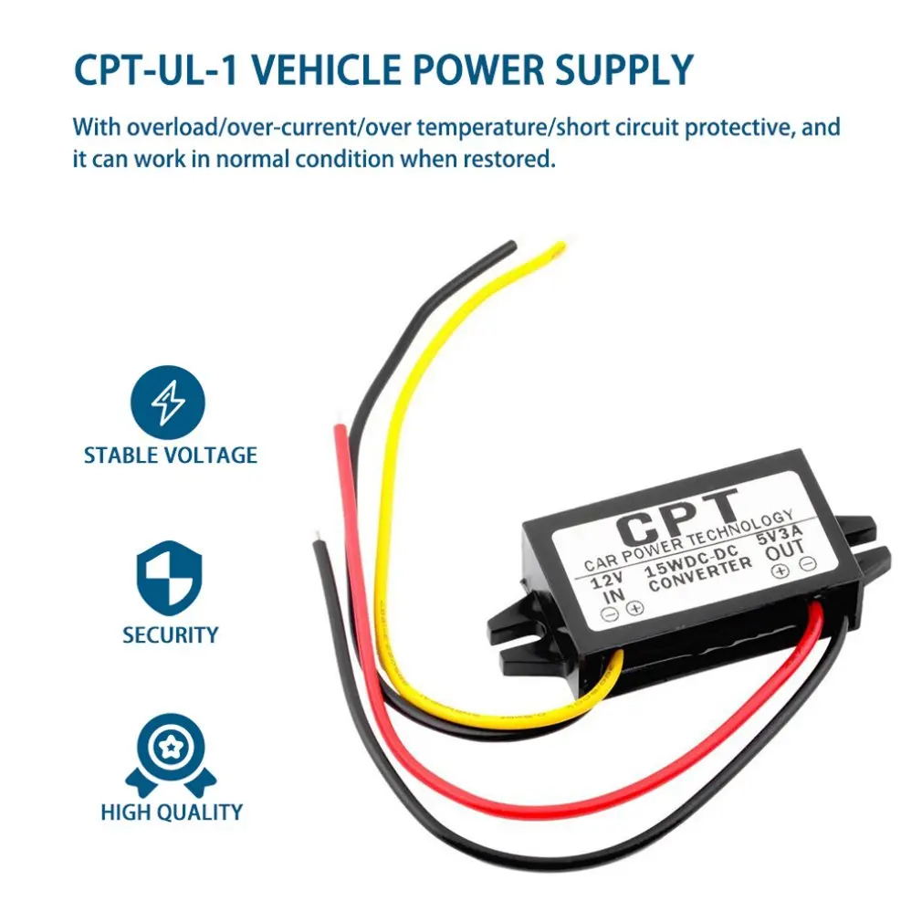 CPT-UL-1 Водонепроницаемый регулятор напряжения постоянного токапостоянного тока от 12 В до 5 В, 3 А, 15 Вт, Автомобильный светодиодный дисплей, регулятор мощности CPT, автомобильный регулятор мощности