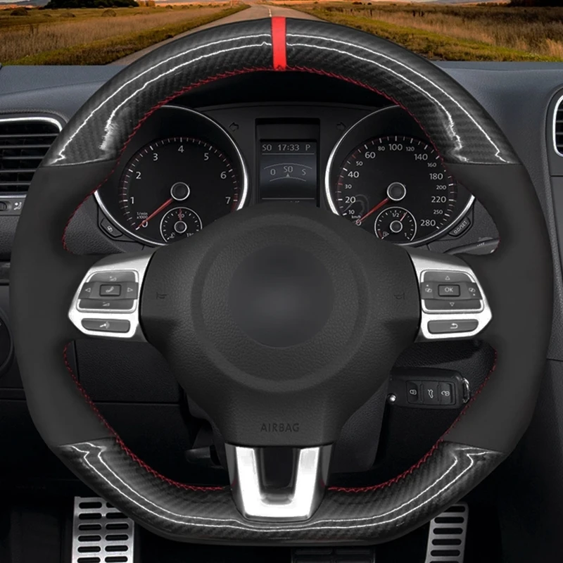Чехол рулевого колеса автомобиля из мягкого черного углеродного волокна замша для Volkswagen Golf 6 GTI MK6 VW Polo GTI Scirocco R Passat CC R-Line