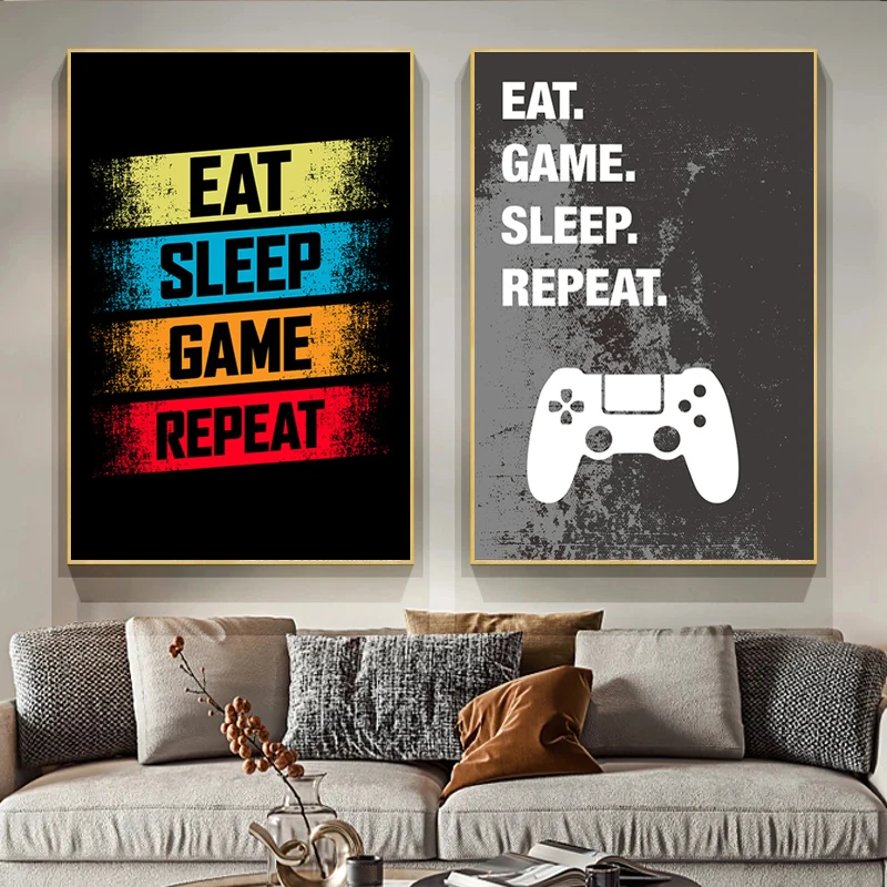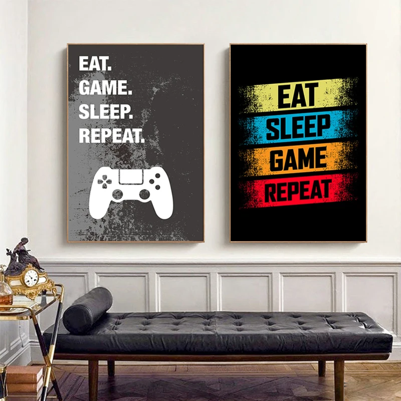 Картина на холсте для мальчиков, с принтами и надписью Eat Sleep, стена игровой комнаты