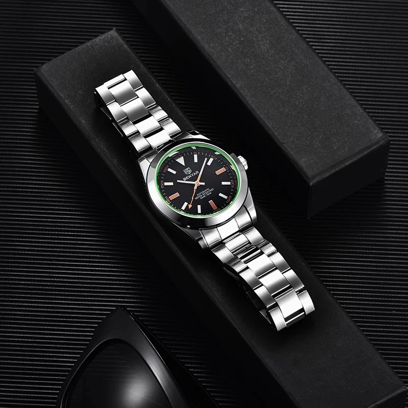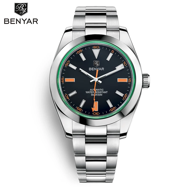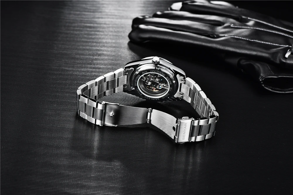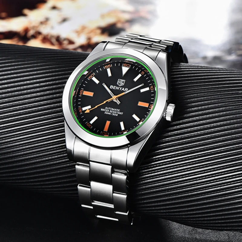 Новинка 2022, Мужские автоматические часы BENYAR из нержавеющей стали, водонепроницаемые мужские механические наручные часы со светящимися стрелками, мужские часы
