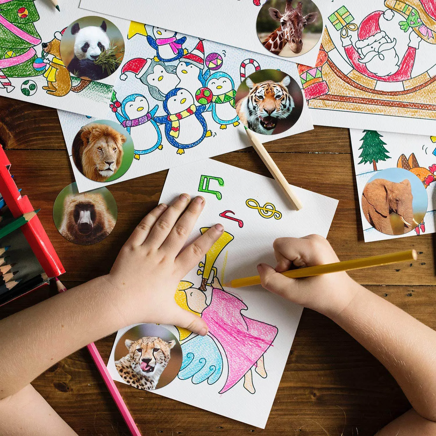 100-500 шт 8 видов конструкций Тигр Лев наклейки награды зоопарк Животные футболка с декором в виде этикетки для печати для детей школьный приз, канцелярские принадлежности