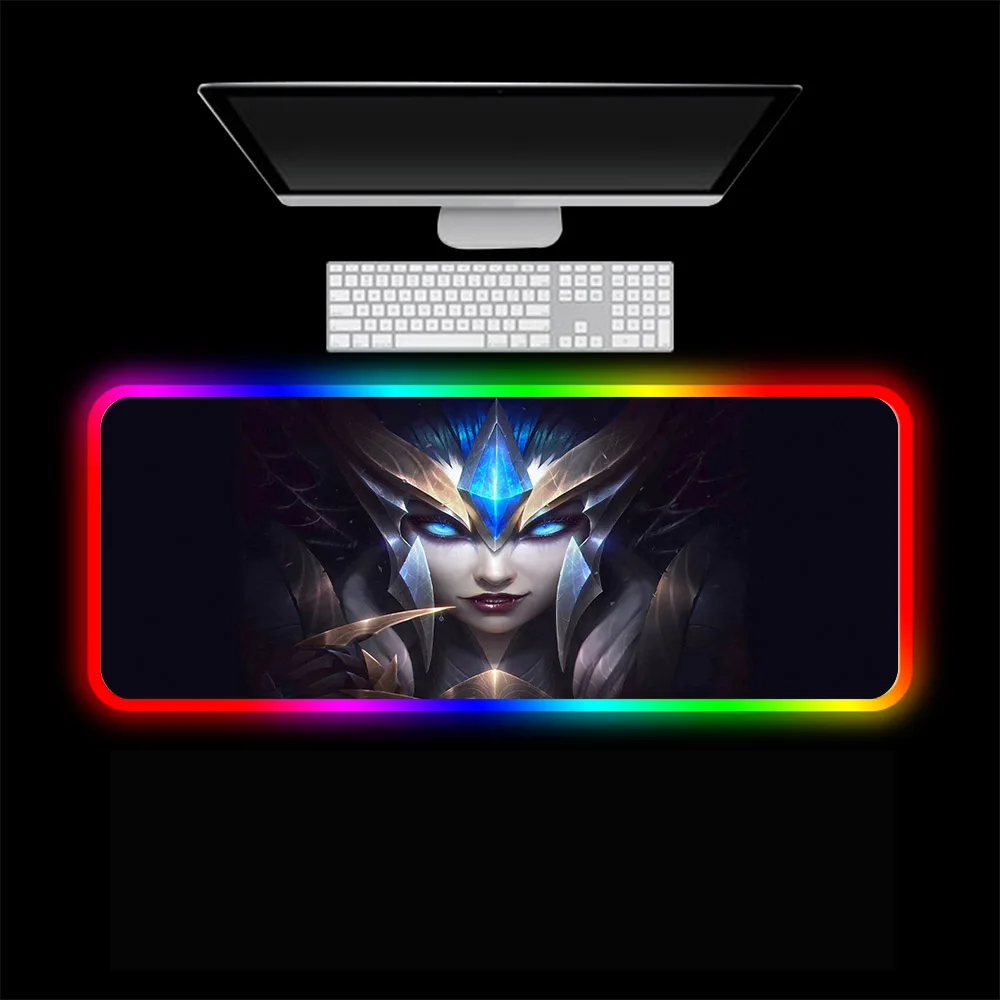 Игровой коврик для мыши LOL Female Warrior RGB, коврик для игровой мыши для ноутбука XxL, светящийся светодиодный игровой Настольный коврик для клавиатуры, игровые аксессуары, игровой стол