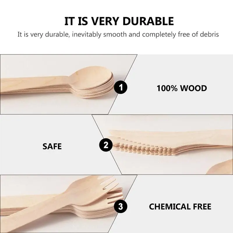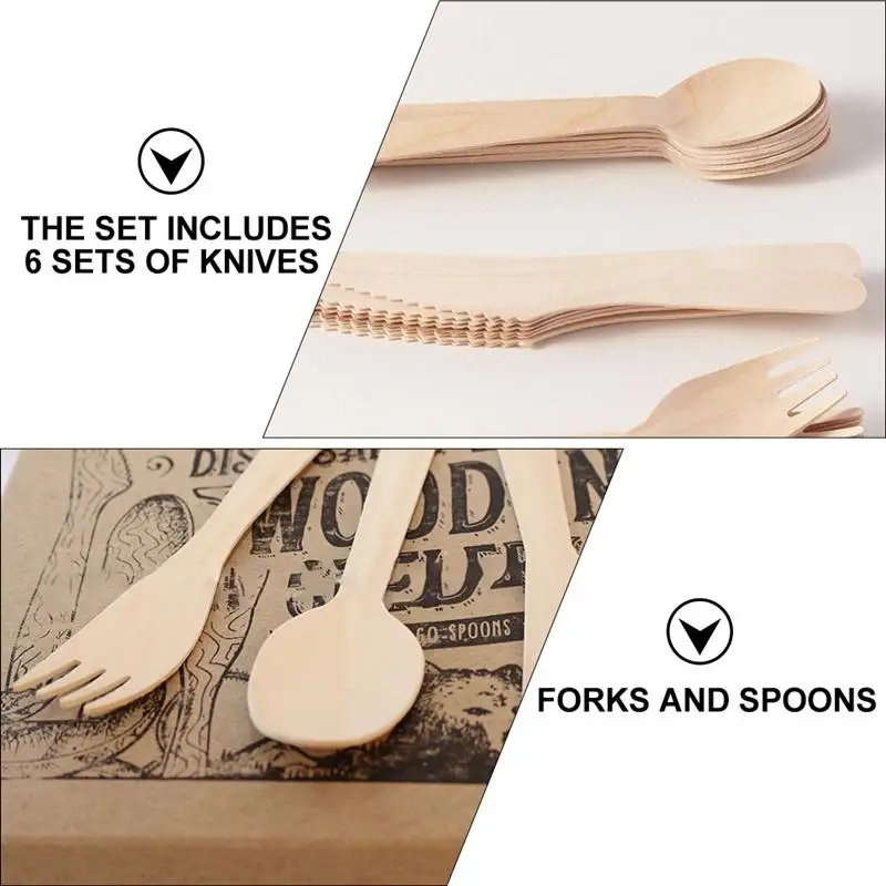 Эти одноразовые столовые приборы изготовлены из древесного материала для безопасного использования. Набор столовых приборов портативный, компактный и легкий, что делает его чрезвычайно легко взять с собой в любом месте. Одноразовый дизайн очень удобен, не нужно чистить после использования, отлично подходит для дня рождения.