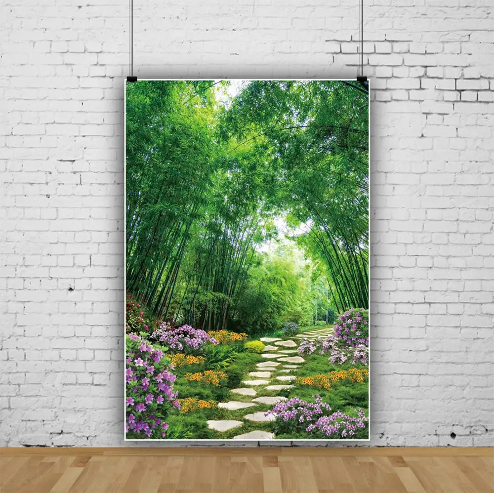 Зеленые весенние фоны для фотографии бамбуковый сад цветок камень дорога естественный вид живописный фото фон для фотостудии