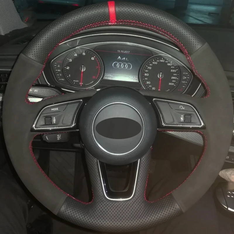 Замша, натуральная кожа, черная, ручная работа, для Audi A3 чехол рулевого колеса автомобиля-2017, A4 2019-2017, A5 2019-2018, S5 2019-2018, 2019