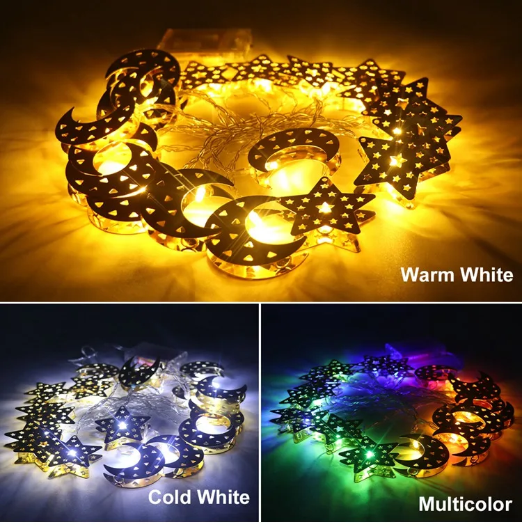 ИД Мубарак Луна Звезда СВЕТОДИОДНАЯ Гирлянда Декор для Исламской Му...