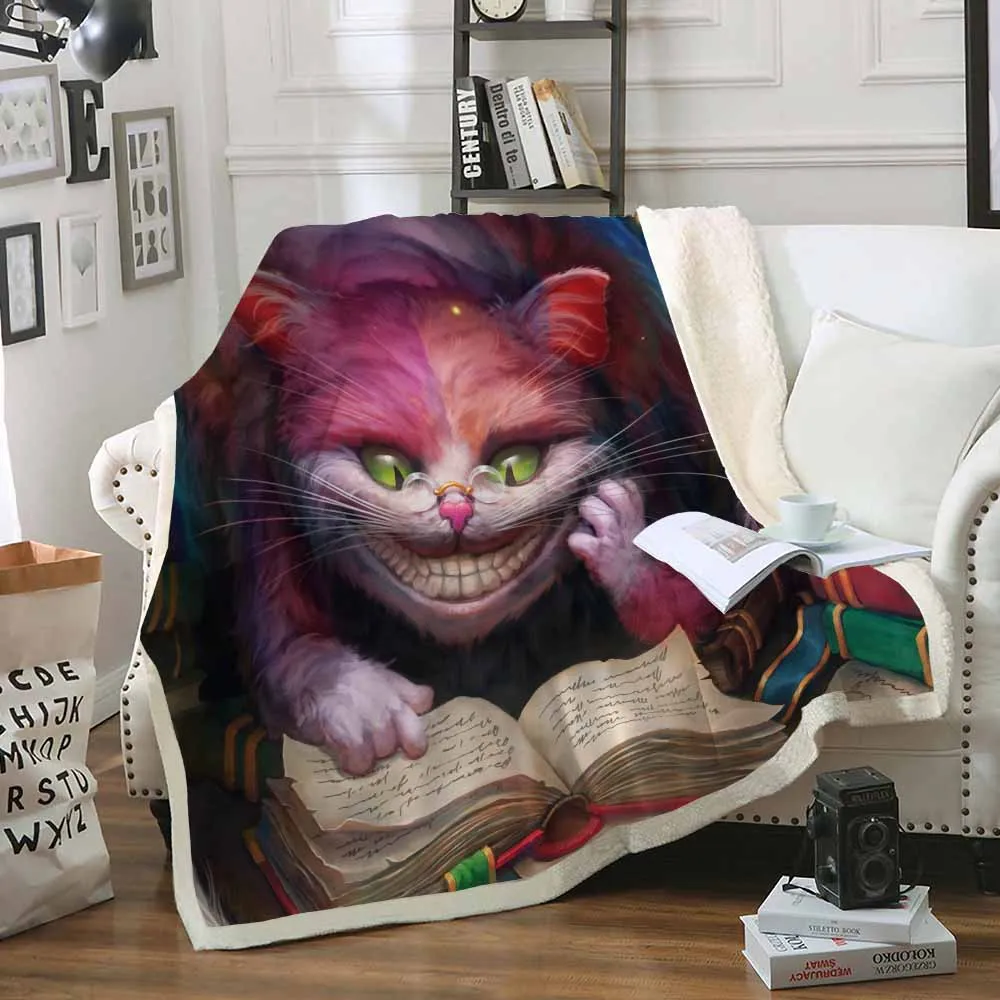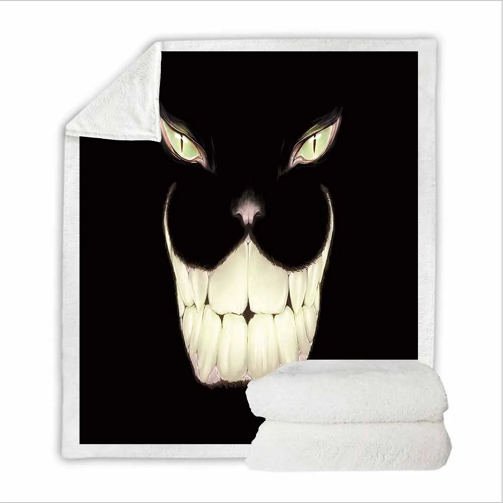 Флисовое одеяло для дома, путешествий, с изображением улыбающихся кошек, шерпа, одеяло для дивана, кровати, дивана, серии мультфильмов, теплое одеяло