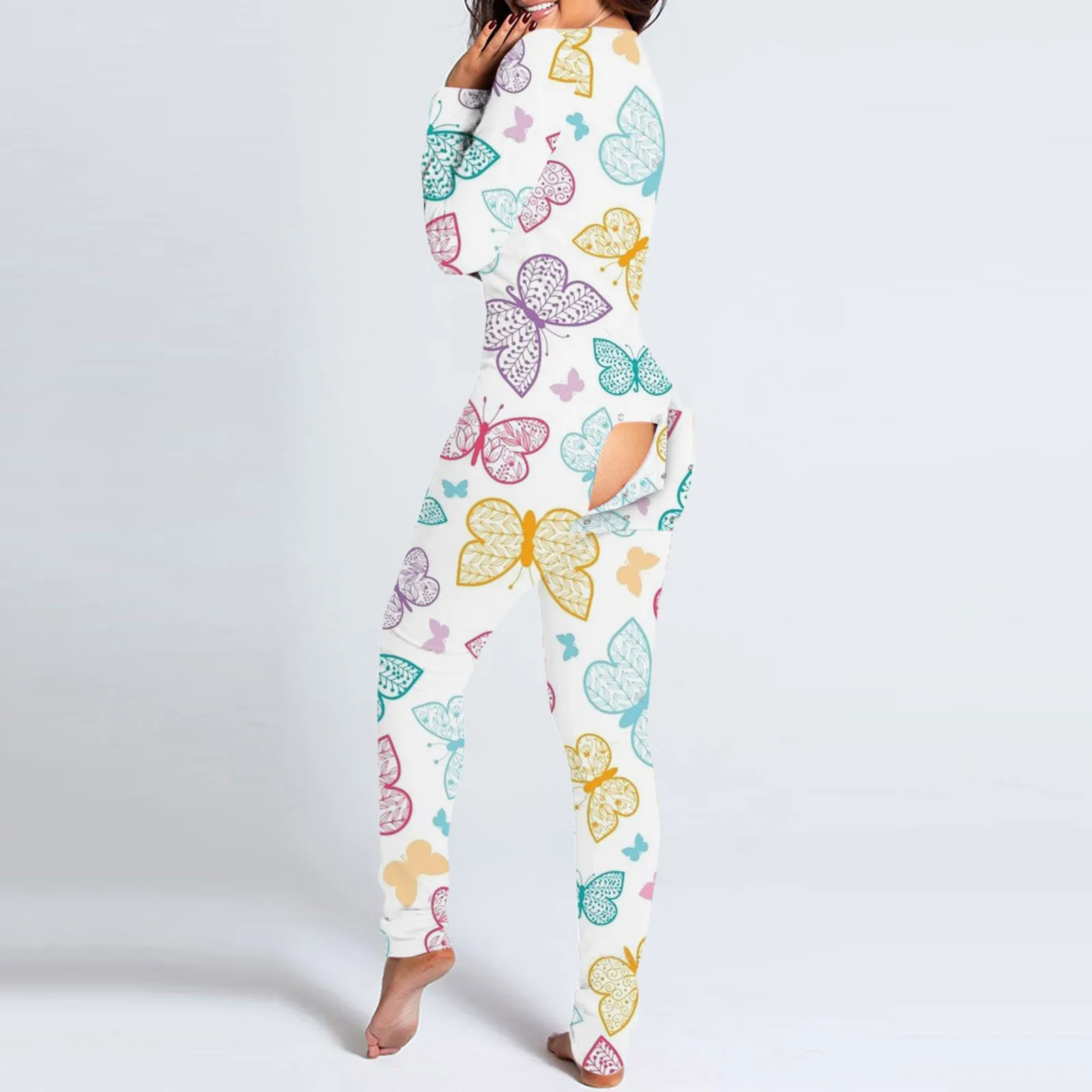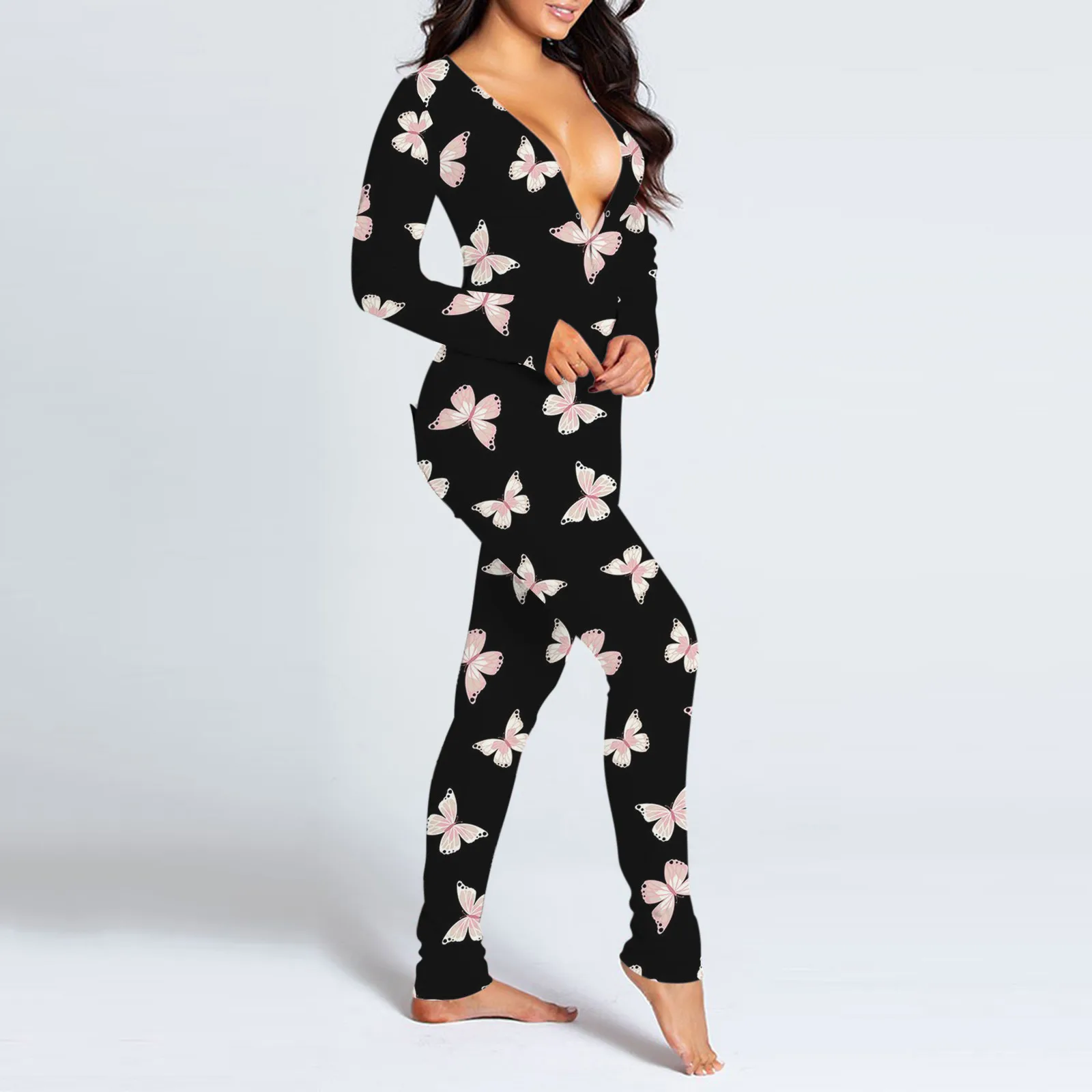 Пикантные женские комбинезоны пуговицы для пижамы с принтом бабочки...