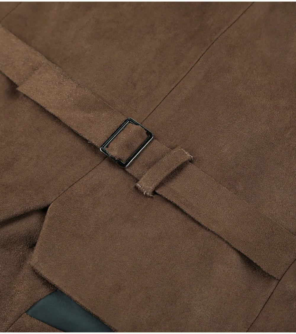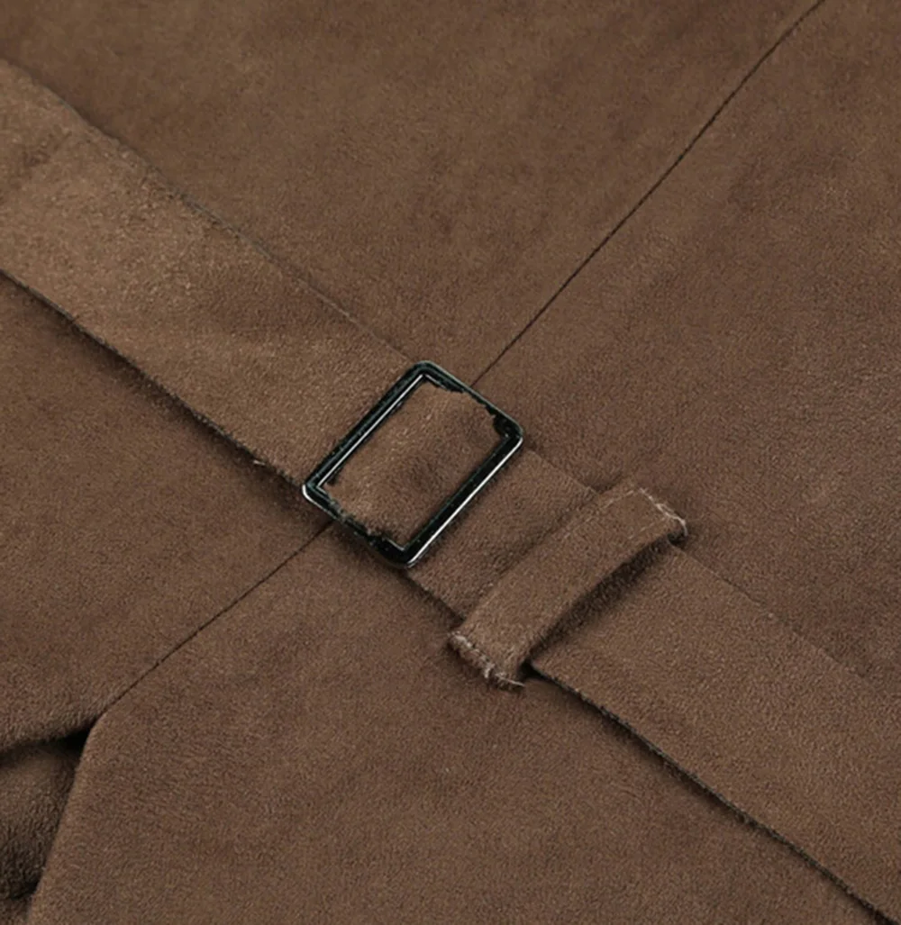Мужской замшевый жилет, повседневный двубортный жилет с V-образным ...