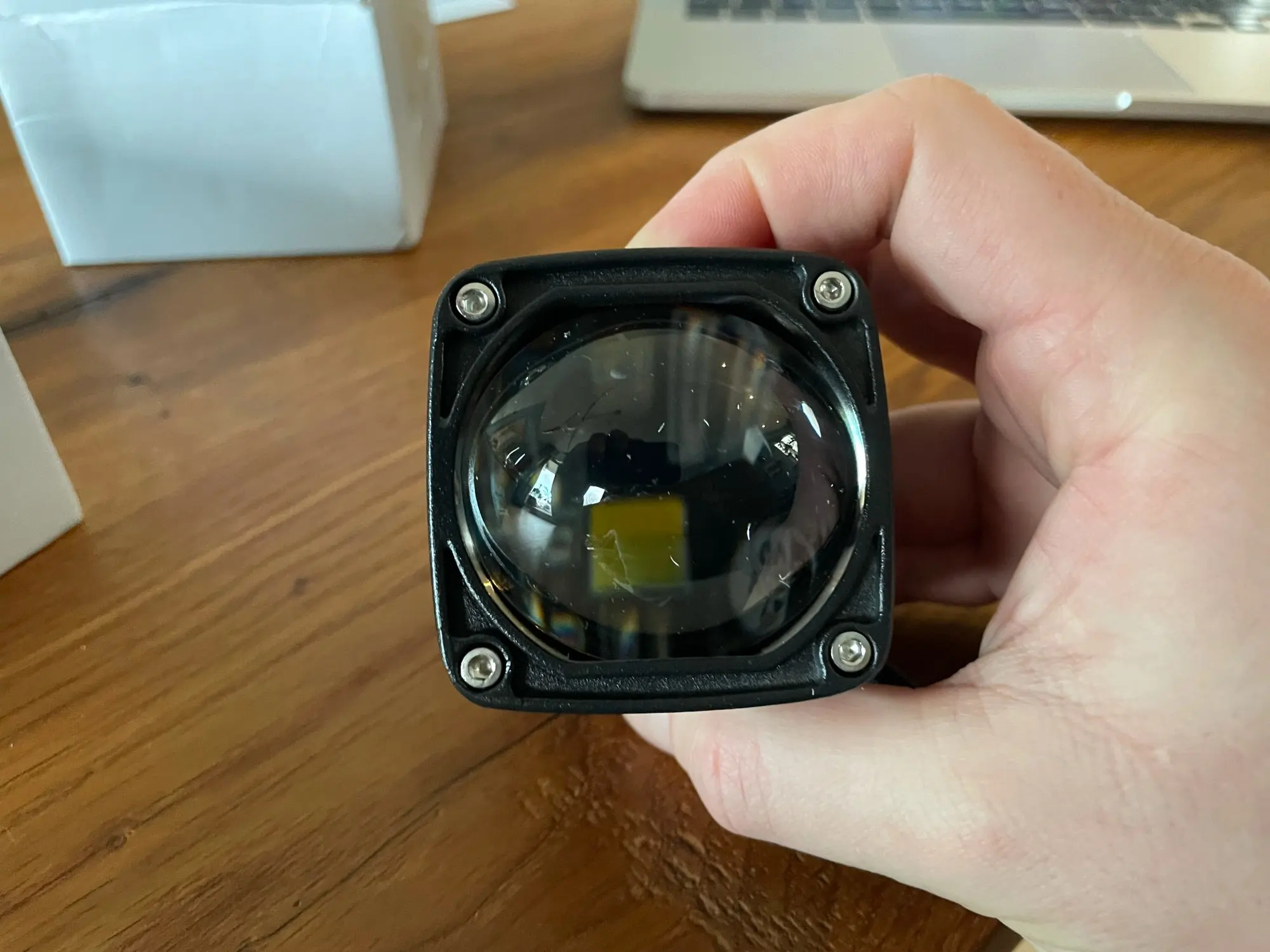 доставка за две недели, выдача на кассе Пятёрочки. Долго искал фонари чтобы установить на лодку, мощные и компактного размера. купил пару данных линз. то что надо. влагозащита обеспечена резиновым кольцом между крышкой и корпусом очень компактные: умещаются на ладони яркий белый свет- фото сделано с окна 17 этажа советую к покупке!!!