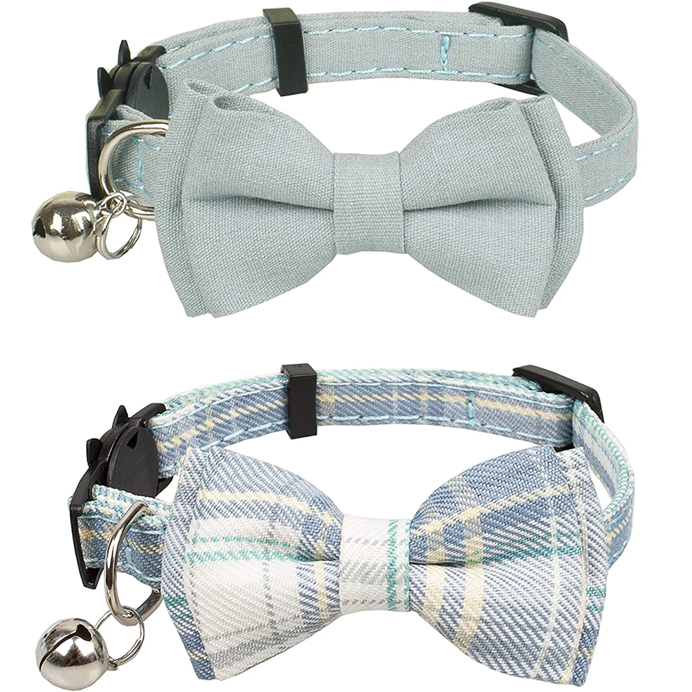 Ошейник с колокольчиком и классическая клетчатая галстук-бабочка, Регулируемые защитные ошейники с котенком для домашних животных и щенков 7,8 10,2 дюйма