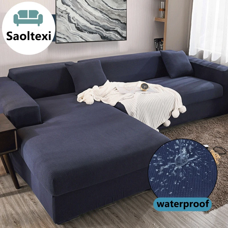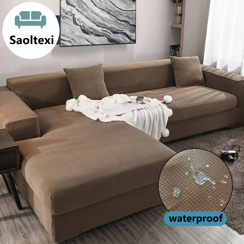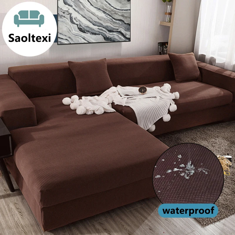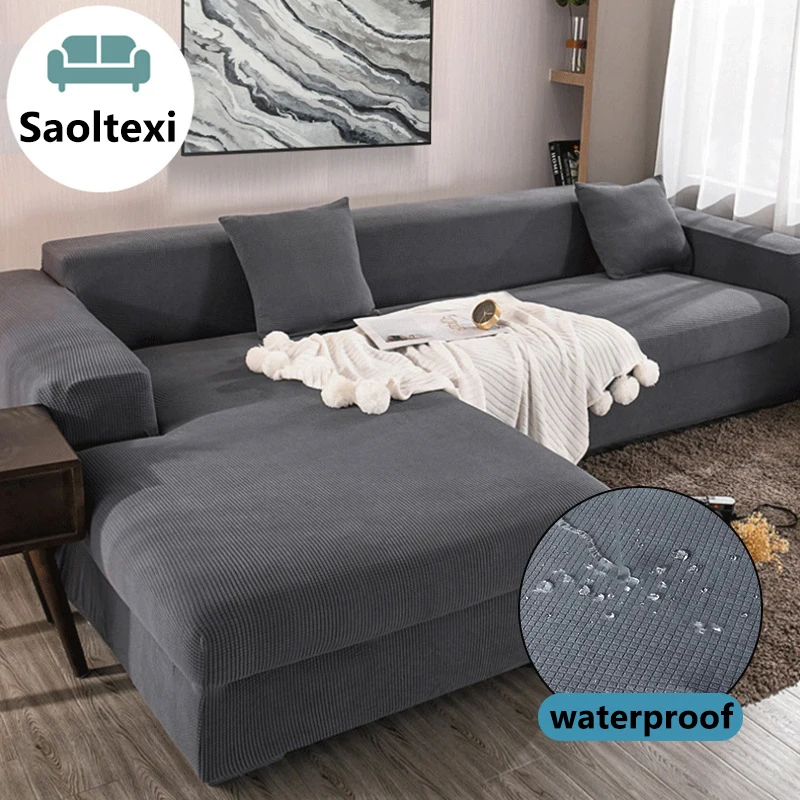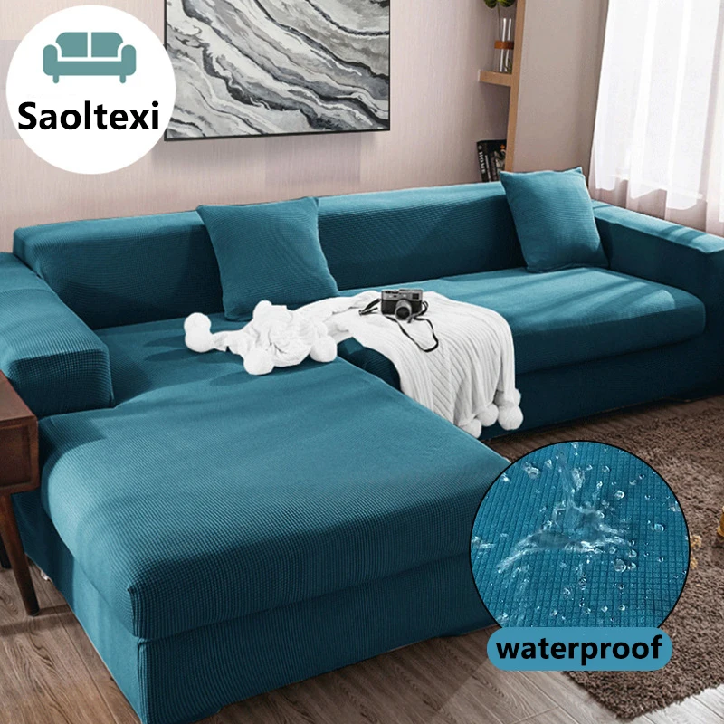 Чехол для дивана, жаккардовый, однотонный, эластичный, L-образный