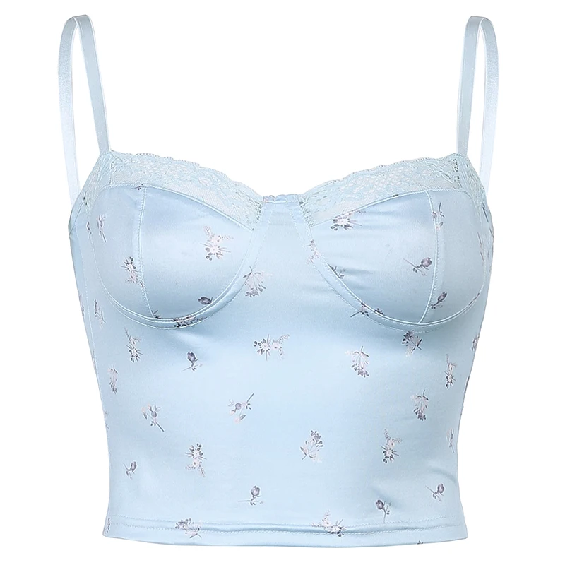 IAMSURE, кружевная отделка, цветочный принт, голубой бюстье, Camiso...