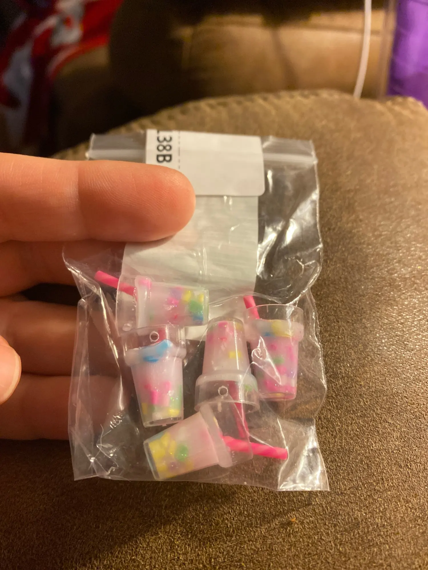 Такие милые и красивые коктейльные стаканчики! Мне очень понравились! Подходят для кукол 1/6 и 1/12.,целые,есть дырочки сбоку - можно подвесить как брелок(для тех же кукол например). Быстрая доставка в Пятёрочку в Подмосковье - 10 дн. Рекомендую товар и продавца!