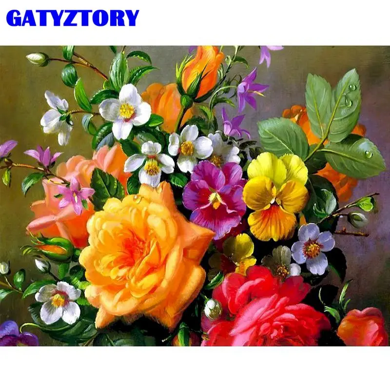 GATYZTORY и изображениями красочного цветка картина по номерам ручной работы 40 х 50 см рамки на холсте современного дома Гостиная украшения стены искусства