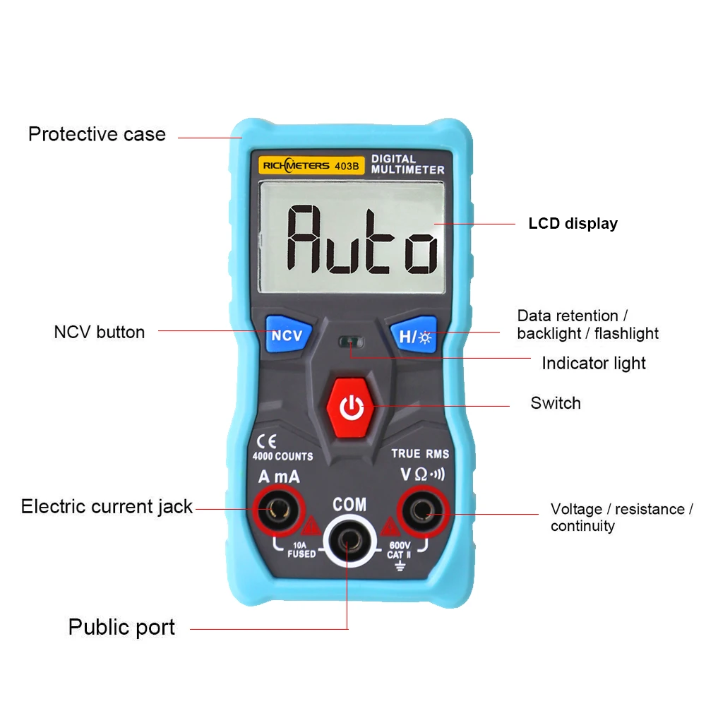 Автоматический цифровой мультиметр RM403B, тестовый инструмент с автоматическим выбором диапазона, True-RMS, Бесконтактный индикатор напряжения, 4000 отсчетов, переменныйпостоянный ток, Ом, интеллектуальная подсветка