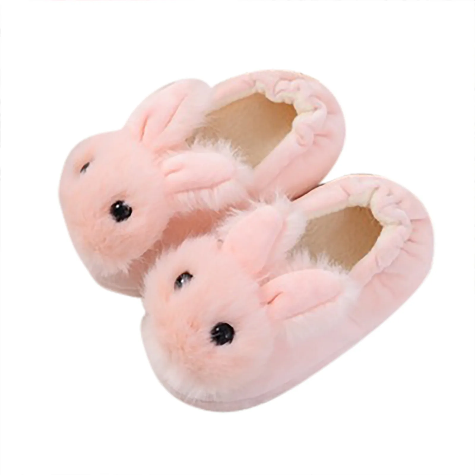 Детские теплые Нескользящие хлопковые тапочки с рисунком кролика
