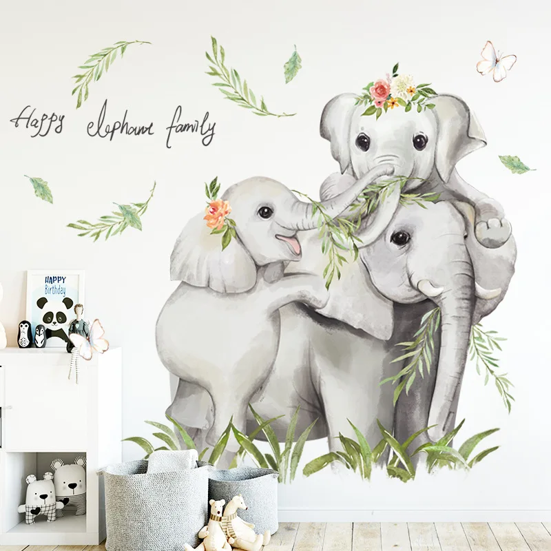 Mamalook, мультяшный сафари-жонгл, 3 слона, семья, детские наклейки на стены, Наклейки на стены для детской комнаты, ПВХ, Декор для дома, спальни, наклейка