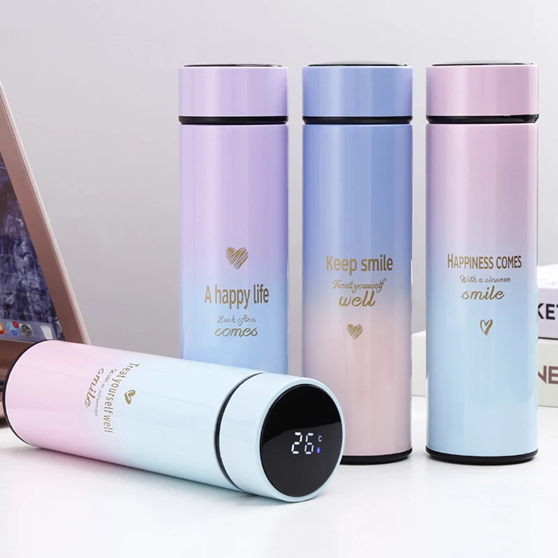 500 мл Термос Кружки бутылки для воды для чая кофе из нержавеющей стали спортивные светодиодный ные термокружки для путешествий термос для горячей воды