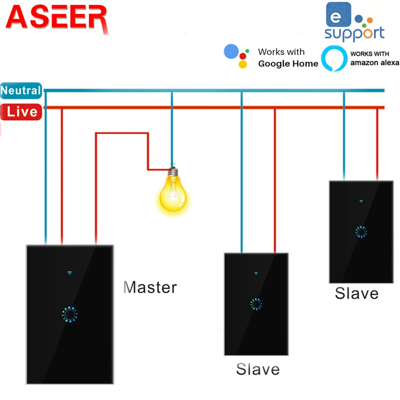 ASEER TuyaEwelink 1-2-3-4Gang 3 way Smart control сенсорный wifi переключатель, wifi умный сенсорный светильник работает с Siri, alexa google