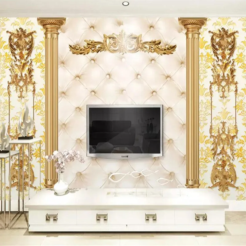 Настенные 3D фрески на заказ, роскошные золотые обои в европейском стиле, в мягпосылка, для гостиной, фона за телевизором