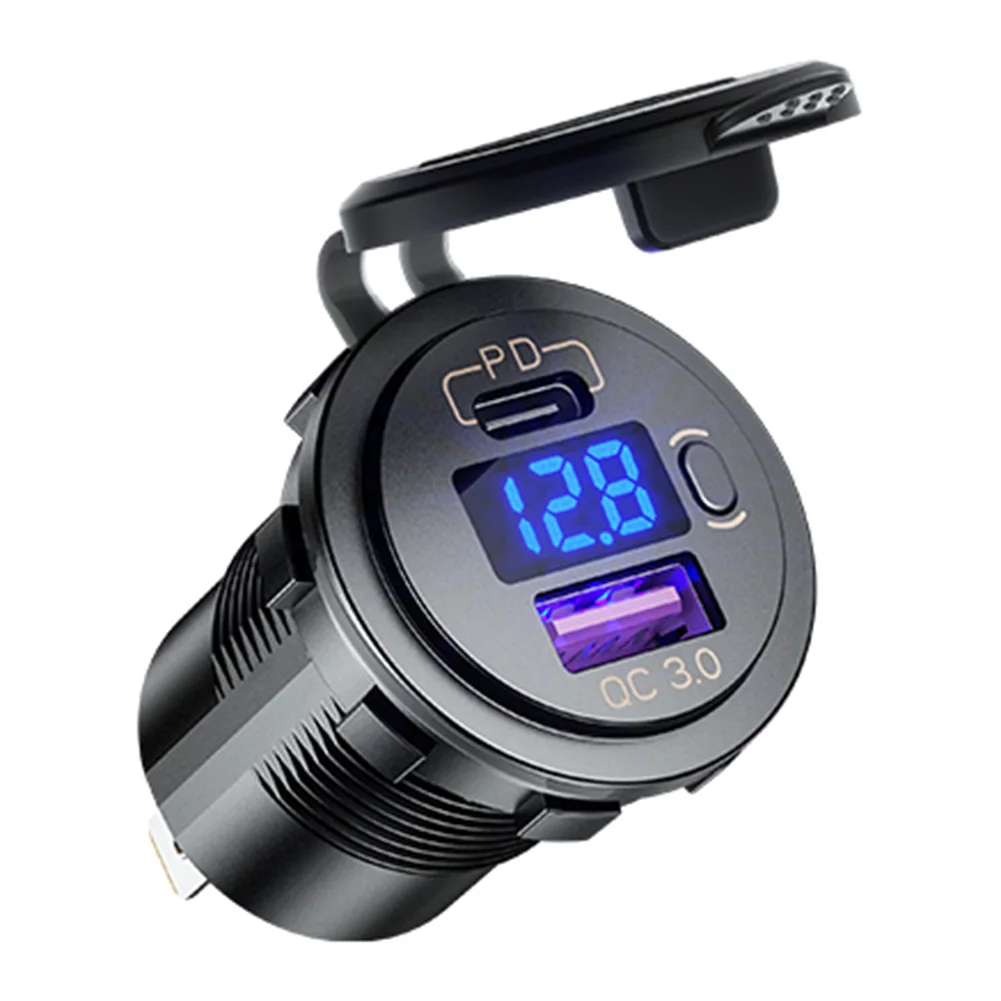 P21-B автомобильное мотоциклетное двойное USB зарядное устройство Быстрая зарядка QC 3,0 + PD USB быстрое зарядное устройство розетка адаптер с переключателемХарактеристика:1. Это умное быстрое автомобильное зарядное устройство QC3.0 + PD;2. Светодиодный Вольтметр для мониторинга батареи в реальном времени;3. С переключателем для включения/выключения питания;4. Подходит для мобильных телефонов, планшетов, GPS и других usb-устройств.Спецификация:Материал: ПоликарбонатЦвет внешнего вида: черныйСветильник Цвет: красный/синий/зеленыйВходное напряжение: 12-24 В постоянного токаВыходное напряжение: QC 3.0 порт USB типа A: 4,5 в/5A, 5 В/4.5A, 9 В/3A, 12 В/2.5A (макс.)PD USB Type C порт: 5 В/3A, 9 В/3A, 12 В/2.5A, 15 в/2A, 20 В/1.5A (макс.)Размер: 50*36,8 мм/1,97*1,45"Примечание:1. Возможны незначительные отклонения в размере из-за ручного измерения, различных методов измерения и инструментов.2. Изображение может не отражать фактический цвет изделия из-за различных фотографирования светильник, угол и дисплей монитора.