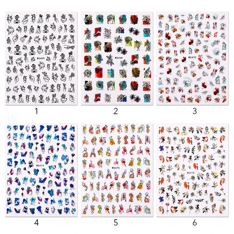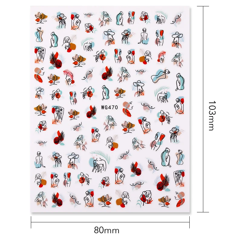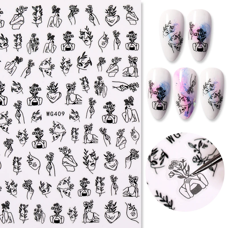 Самоклеящиеся переводные наклейки для ногтей с изображением сексуальной девушки, абстрактные линии, листья, фольга для ногтей сделай сам, стикеры 3D на ногти Nail Art