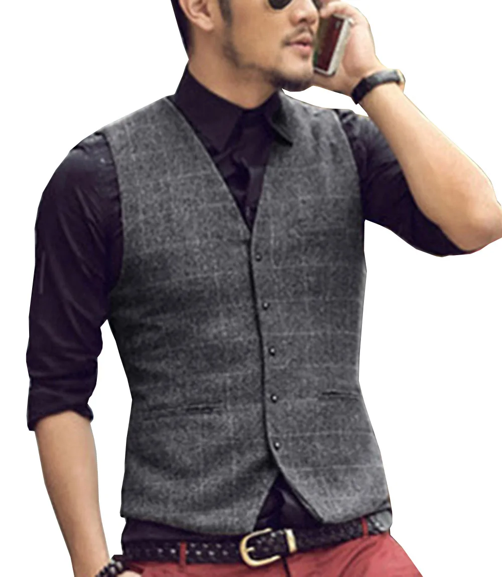Твидовый жилет мужской, Повседневный шерстяной Приталенный жилет с ...
