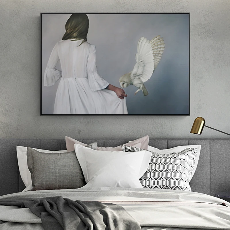 Современная женщина в белом платье, холст, живопись, постеры, принт...