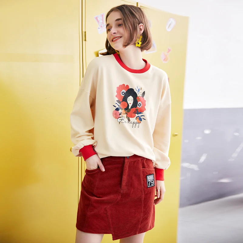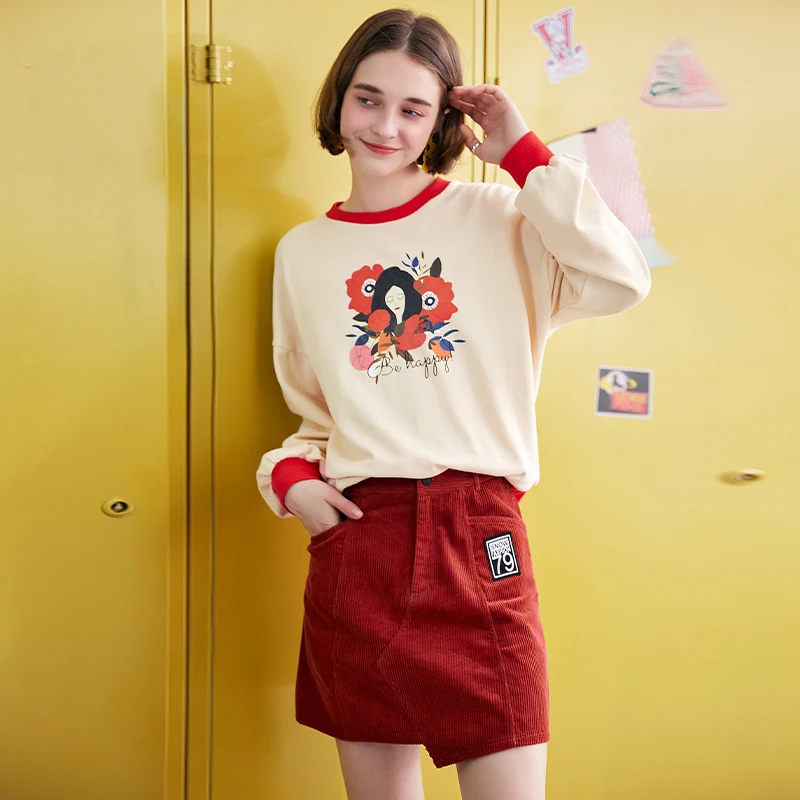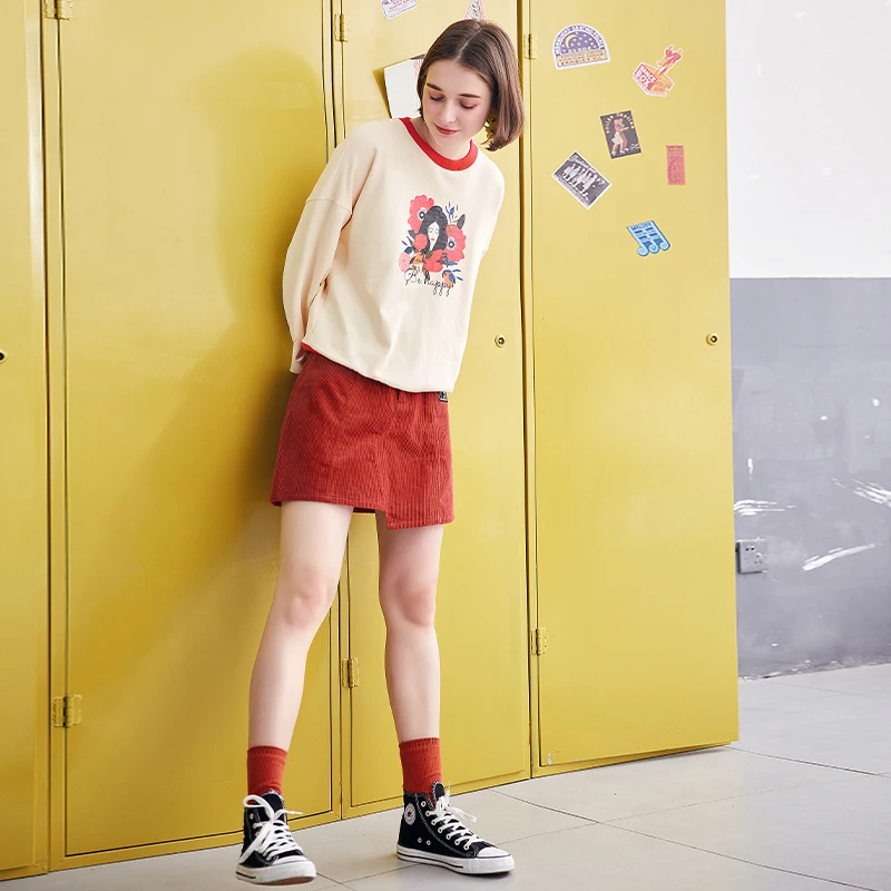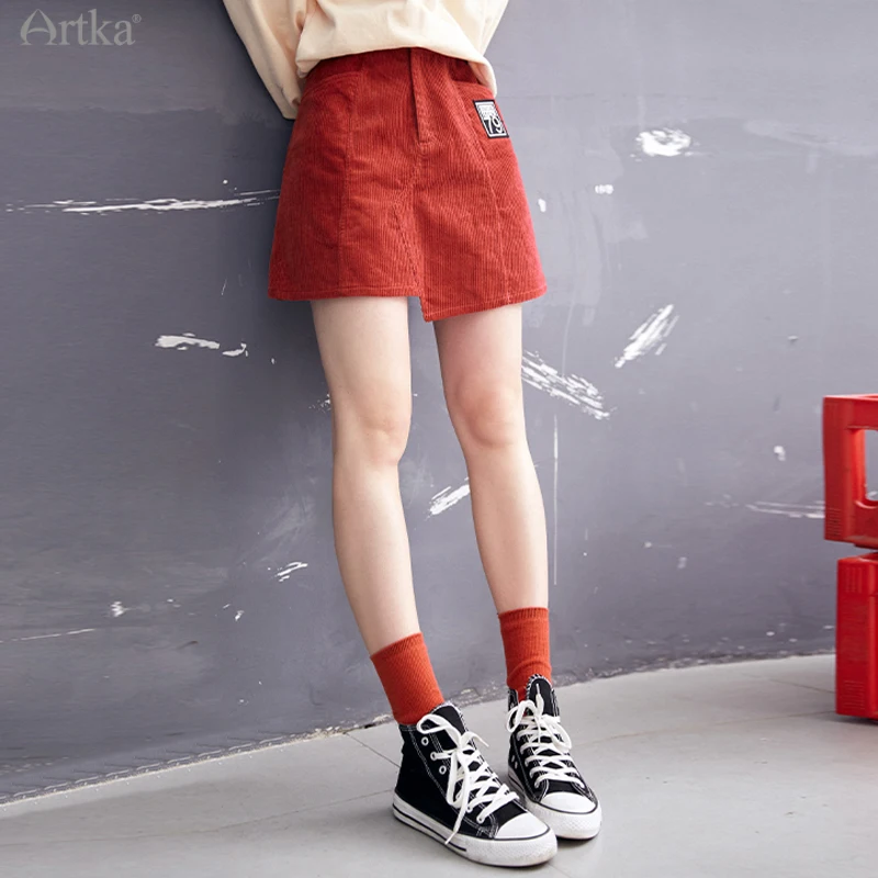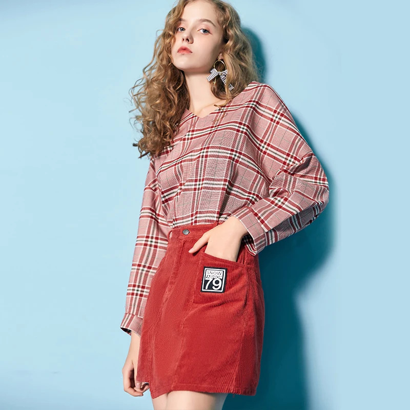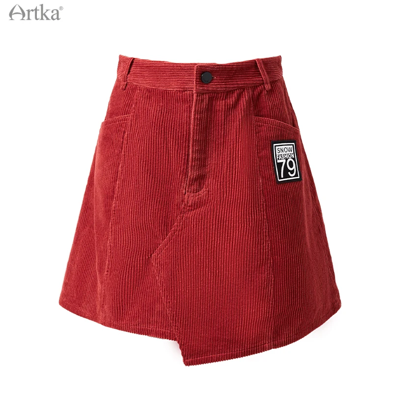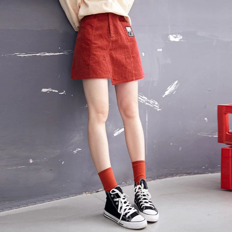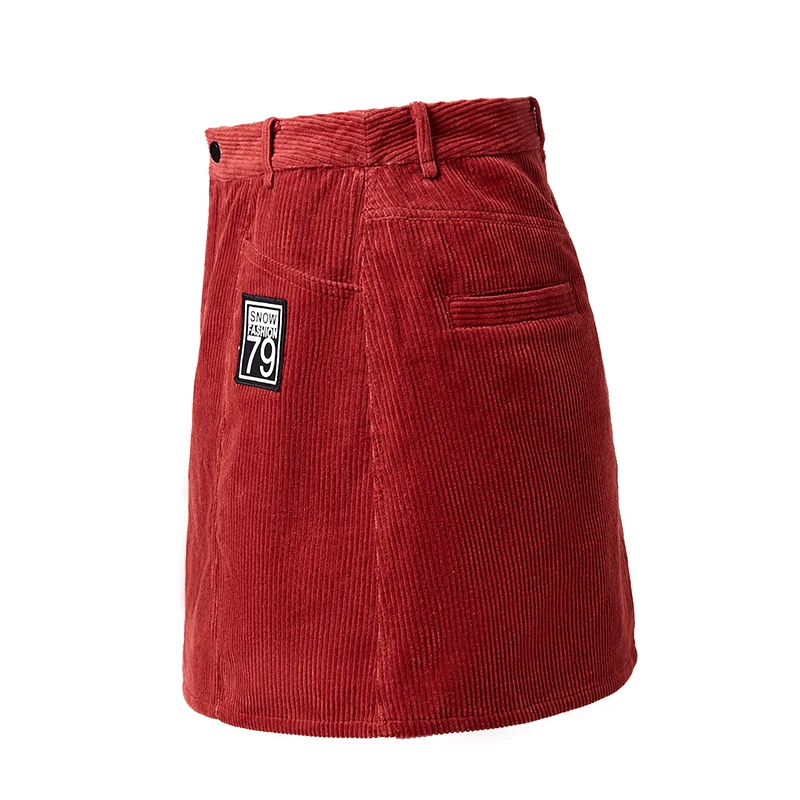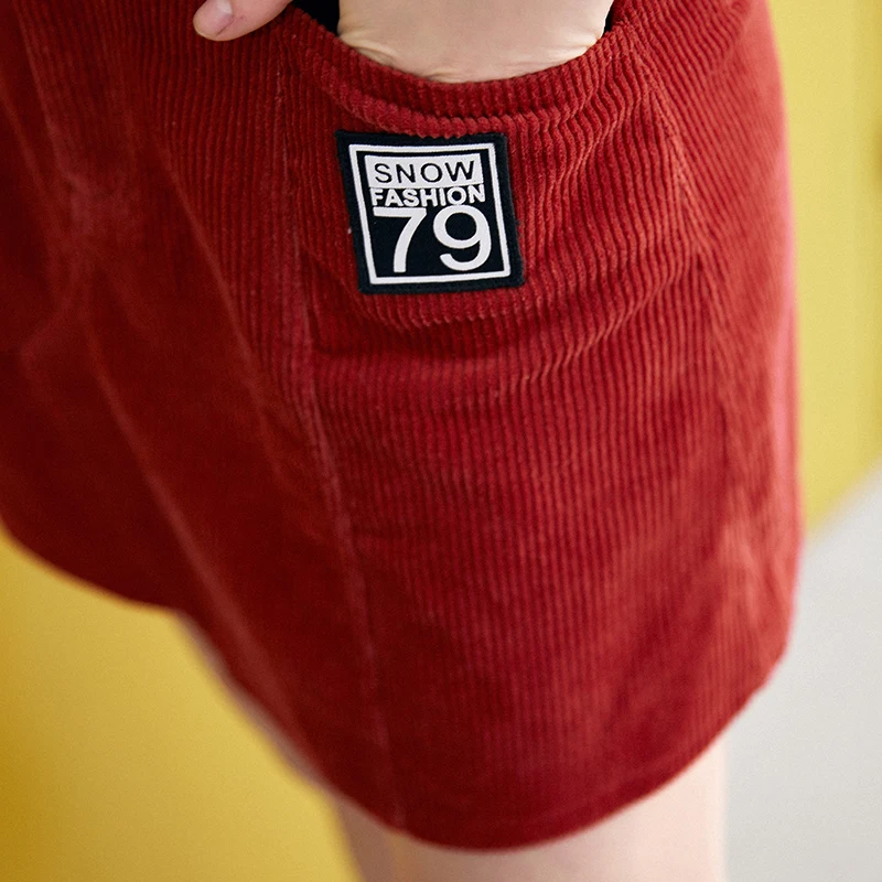 Юбка женская, Вельветовая, трапециевидная, с карманами, на осеньзиму, QA10095D, 2020