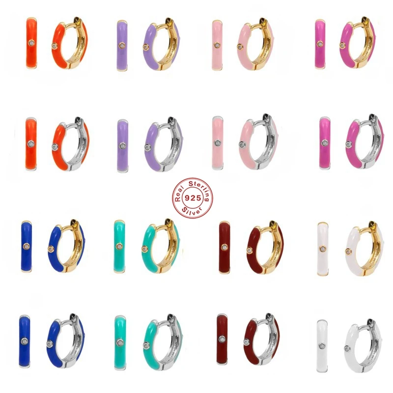 Aide S925 стерлингового серебра, украшенные разноцветными кристаллами Ename кольца 9 Цвета пирсинг Pendientes Ohrringe, обручальные серьги, хорошее ювелирное изделие