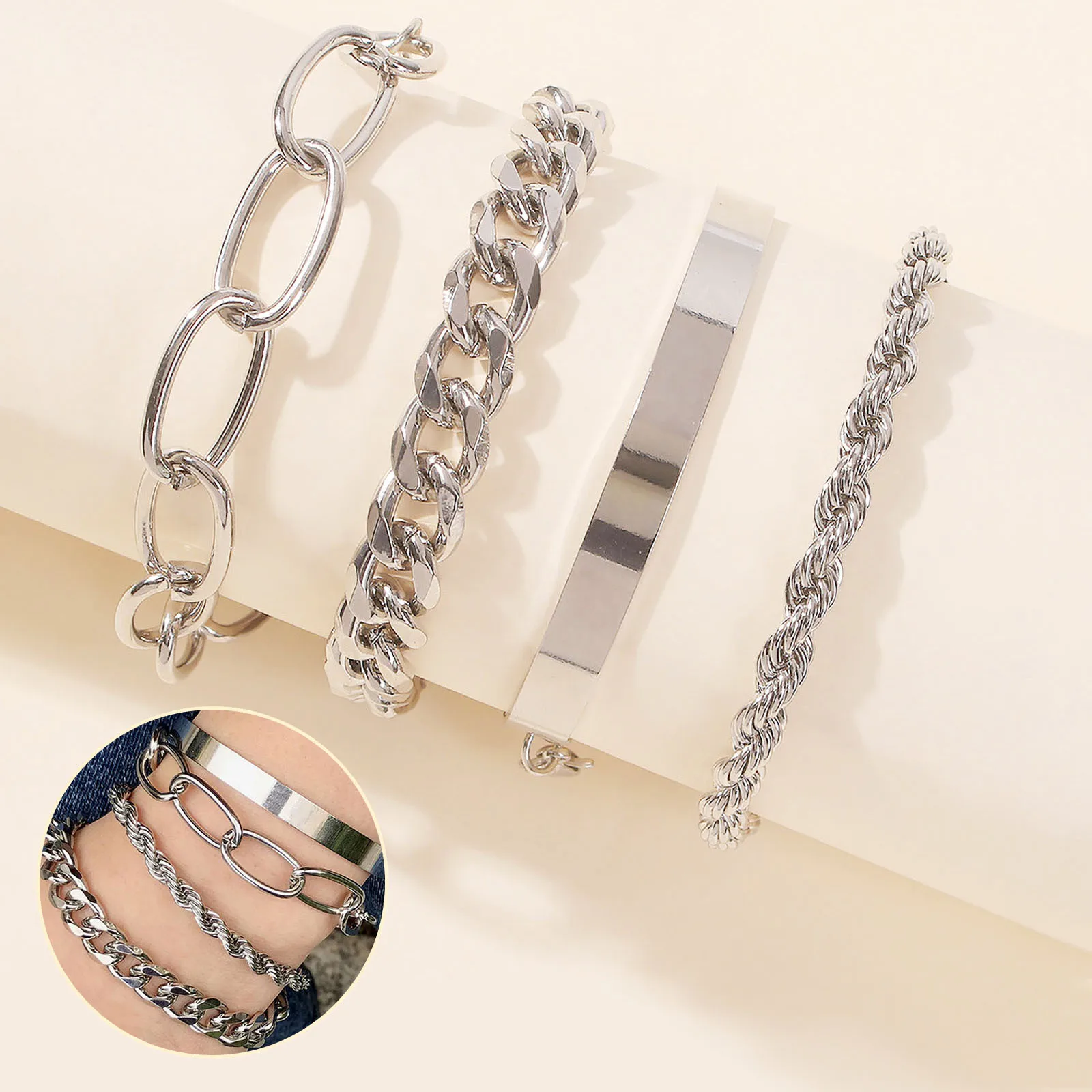 Комплект женских браслетов из кубинской цепи в стиле панк, 4 шт.