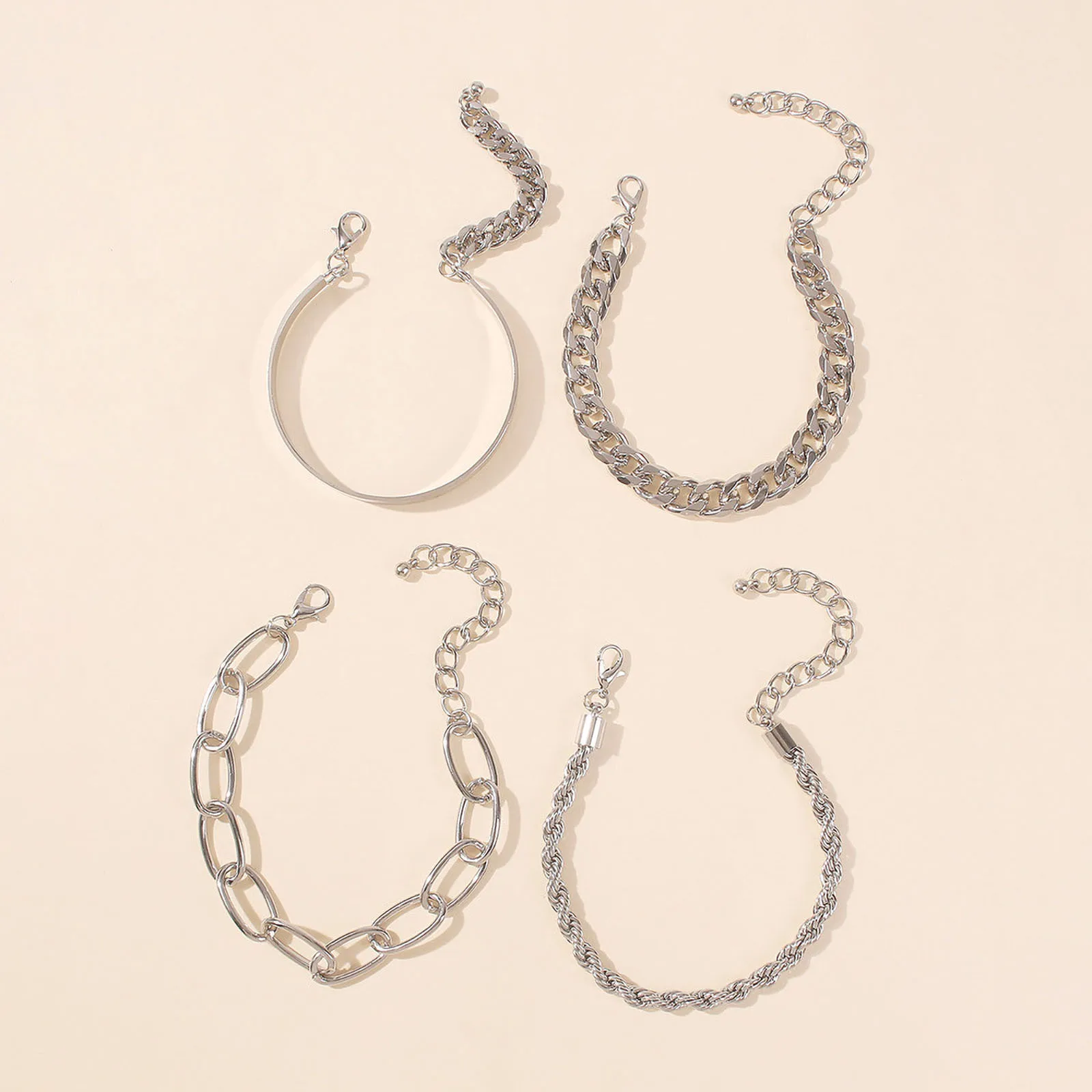 Набор браслетов из четырех частей в простом стиле, изготовленный из изысканного сплава.