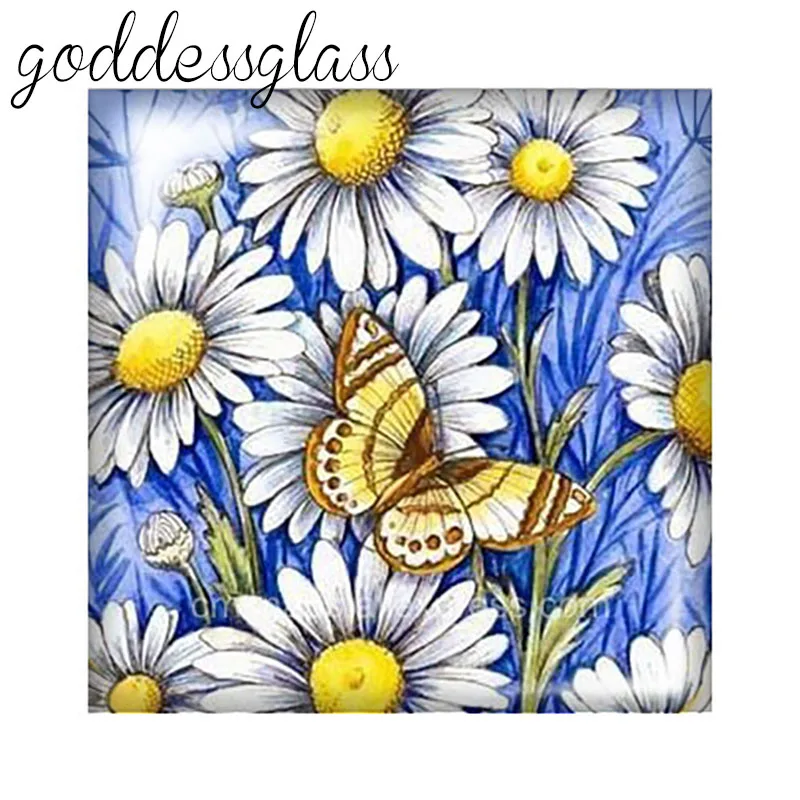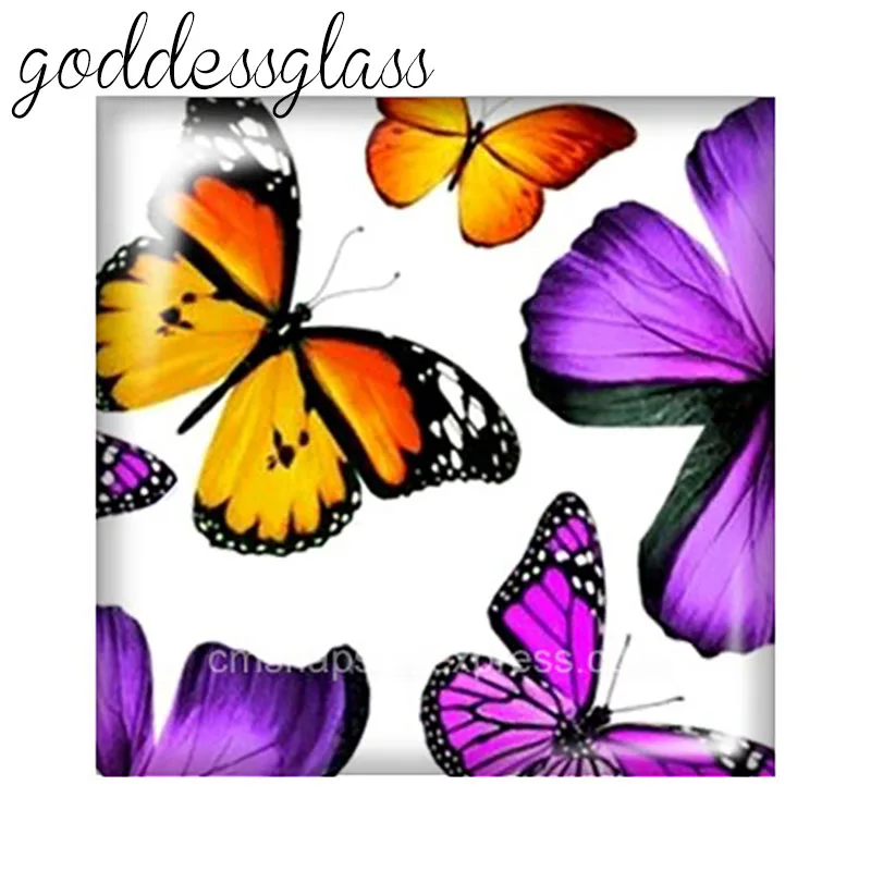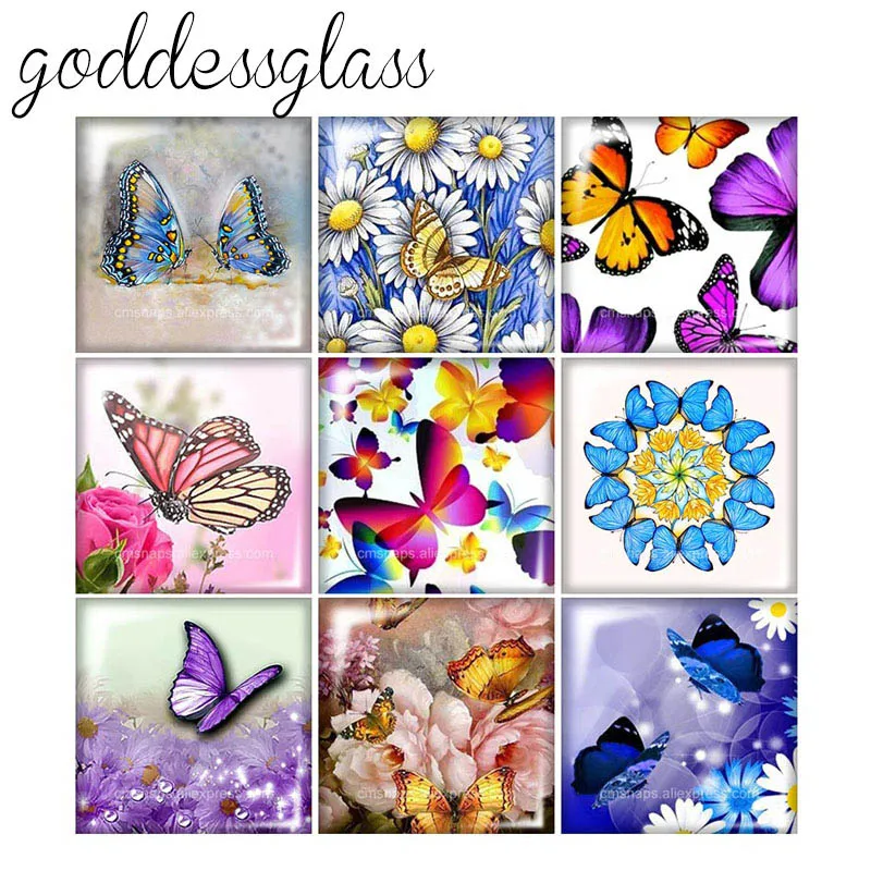 Новый Красота красочными бабочками и бантиками; Цветы квадрат 10 шт. Смешанные 12 мм20 мм25 мм30 мм кабошоны разрисованные изделия из стекла демо с плоской задней частью, украшения своими руками