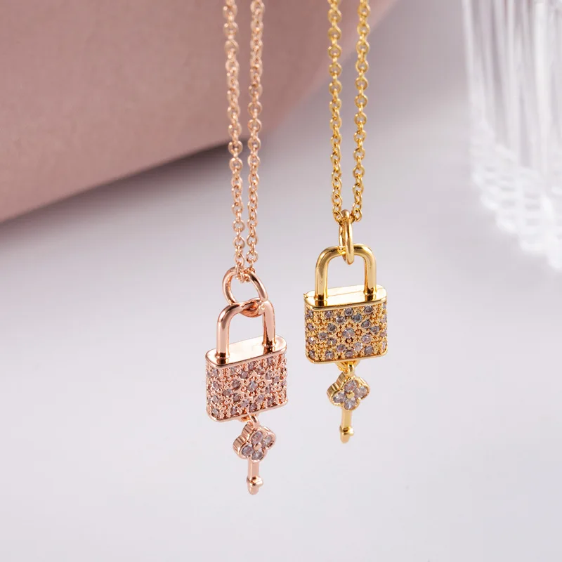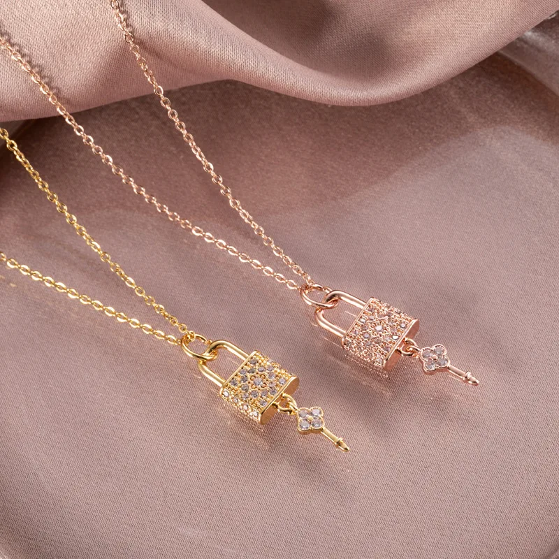 Ожерелье из циркония и золота с подвеской-замком из светильник стали
