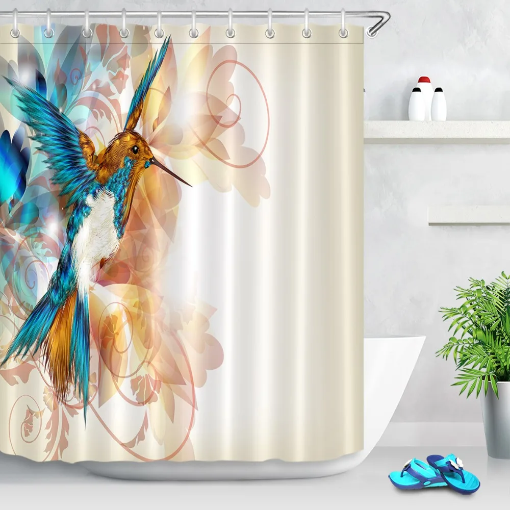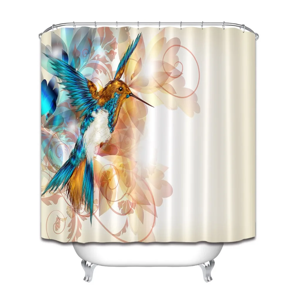Реалистичная цветная занавеска для ванной комнаты с колибри и цветами, водонепроницаемая занавеска для душа из полиэстера, аксессуары для ванной, декоративные наборы