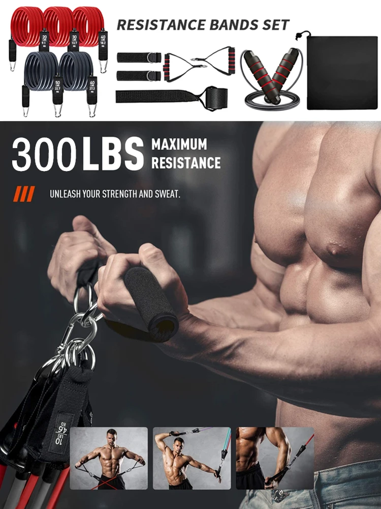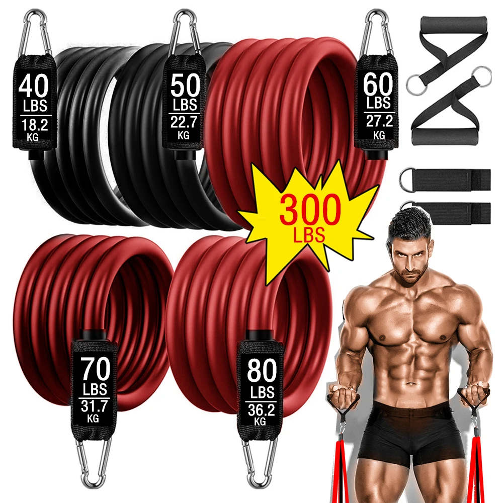 Набор эспандеров-150 фунтов/200 фунтов/250 фунтов/300 фунтов ремешки для упражнений с ручками, дверным якорем, фитнес-ремешки для мужчин и женщин, резинки для физической терапии, домашние тренировки, силовые тренажеры