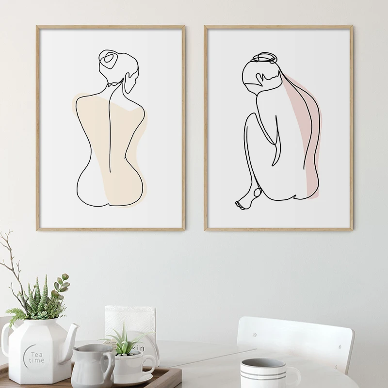 Абстрактная Дамская линия Рисование картина Скандинавская Картина на холсте настенная художественная фигура тело постер и печать для гостиной украшение дома