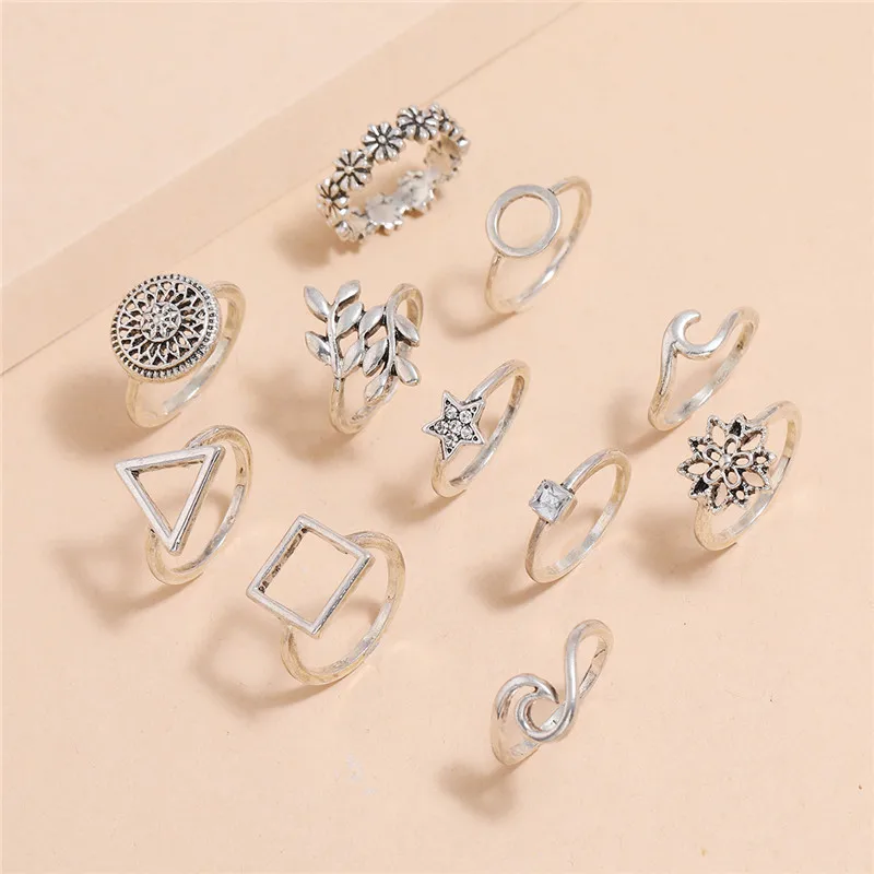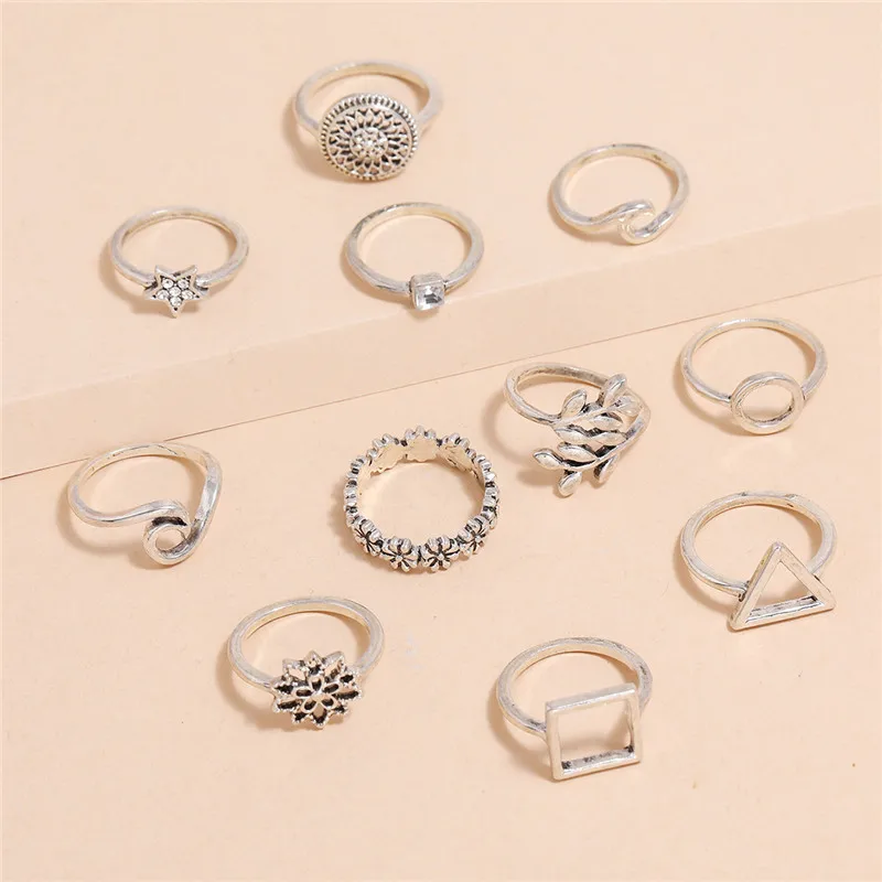 Набор женских винтажных свадебных колец Yobest в богемном ретро-стиле с полыми цветами, звездой, треугольником, квадратом и круглым кольцом, Подарок на годовщину