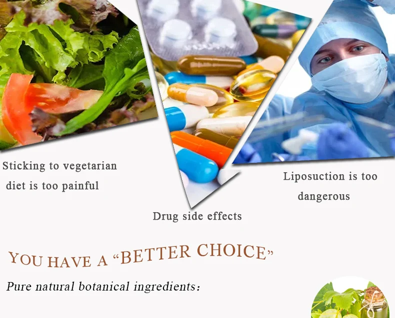 Чистые натуральные растительные ингредиенты: 1. Роза ругоса 2. Витис винифера 3.CROCUS SA TIVUS 4. Токоферол 5.SIMMONDSIA CHINENSIS Содержит розы и различные травяные питательные вещества, которые способствуют метаболизму, ускоряют сжигание жира, уменьшают поры и гидратацию, восстанавливают твердую кожу и легко демонстрируют вашу красоту. Может быть, вы все еще теряете вес с помощью этих методов? Эффект не является идеальным, потеряв деньги и повредив тело. Разрыв между реальностью и идеалом. Слишком болезненно придерживаться вегетарианской диеты Липосакция слишком опасна Побочные эффекты лекарственных средств