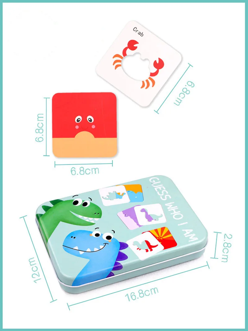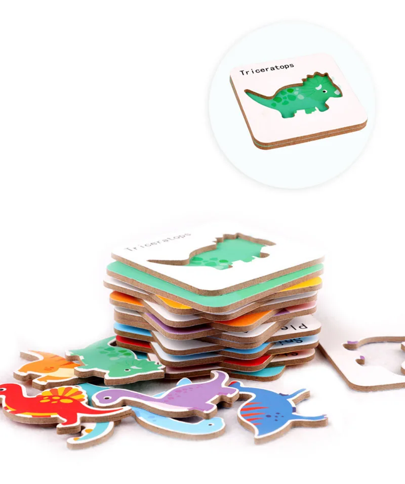 Деревянный пазл в железной коробке, Обучающие Игрушки для раннего обучения, детская головоломка, мультяшный динозавр, развивающая головоломка